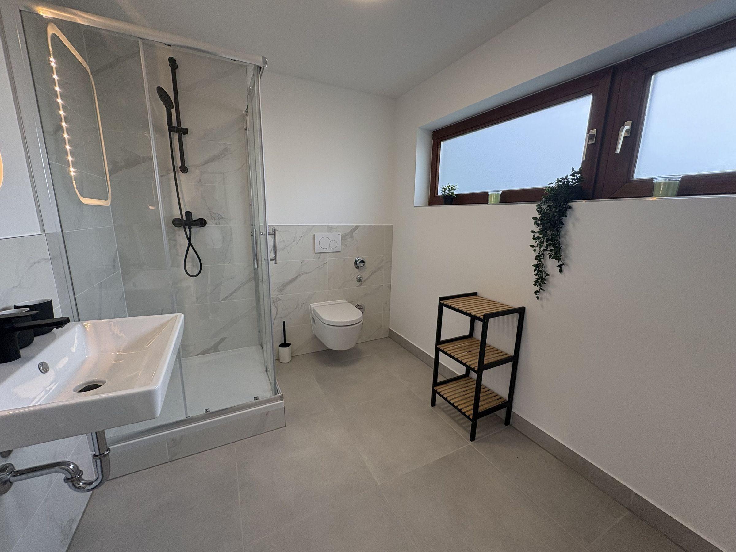 Die Wohnung verfügt über zwei Schlafzimmer: eines mit einem Doppelbett und Kinderreisebett sowie ein weiteres mit einem Etagenbett. Das Badezimmer ist mit Dusche und WC ausgestattet. Ein PKW-Stellplatz befindet sich direkt am Haus. Müllbehälter für Restmüll, Altpapier und Plastik sind am Gebäude vorhanden. Bettwäsche und Laken sind selbst mitzubringen.