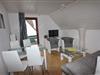 - Wohnzimmer mit Sofaecke und Essplatz für vier Personen