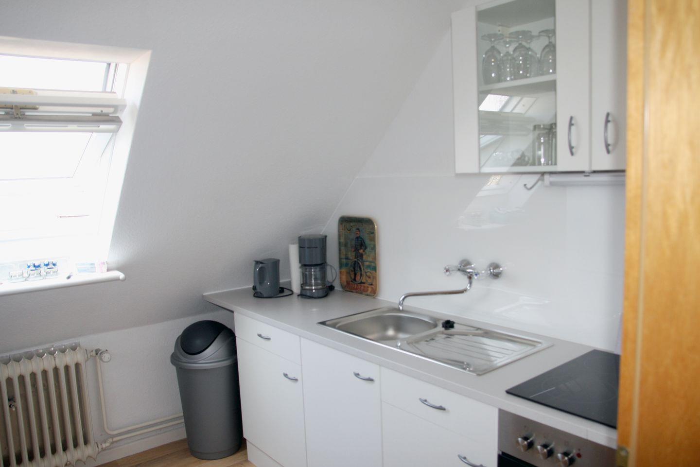 - Küche mit Backofen, Herd und Mikrowelle