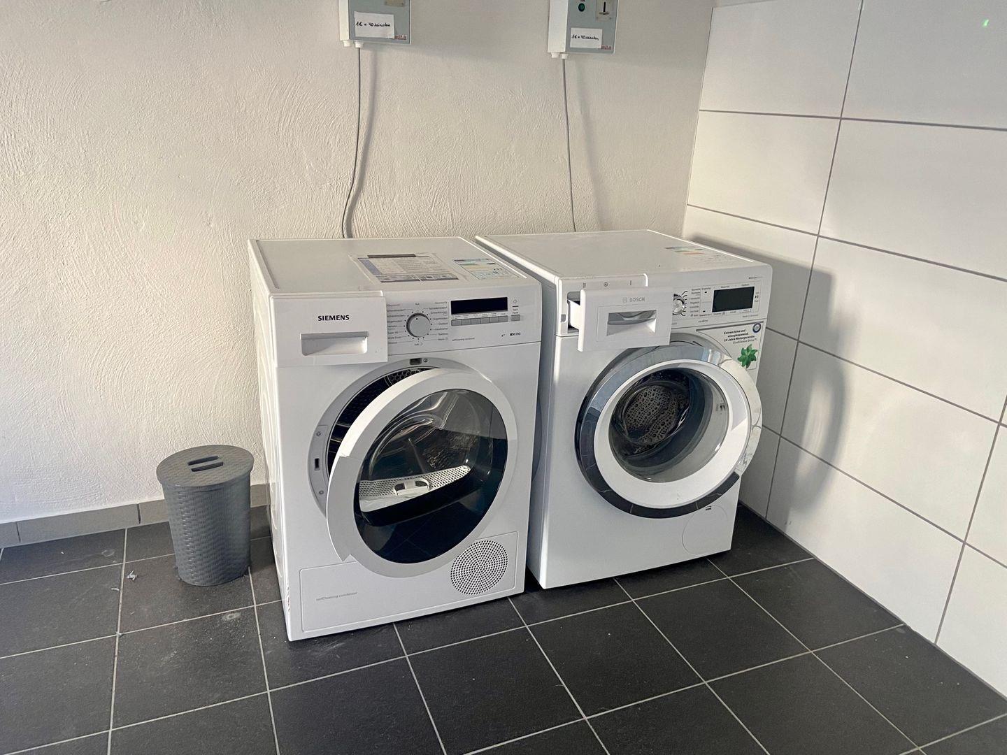 Ein eigener Parkplatz sorgt für entspanntes Ankommen. Im Gebäude haben die Hausgäste die Möglichkeit die Waschmaschine und den Trockner gegen Gebühr zu nutzen und auch Ihre mitgebrachten Fahrräder abzustellen.