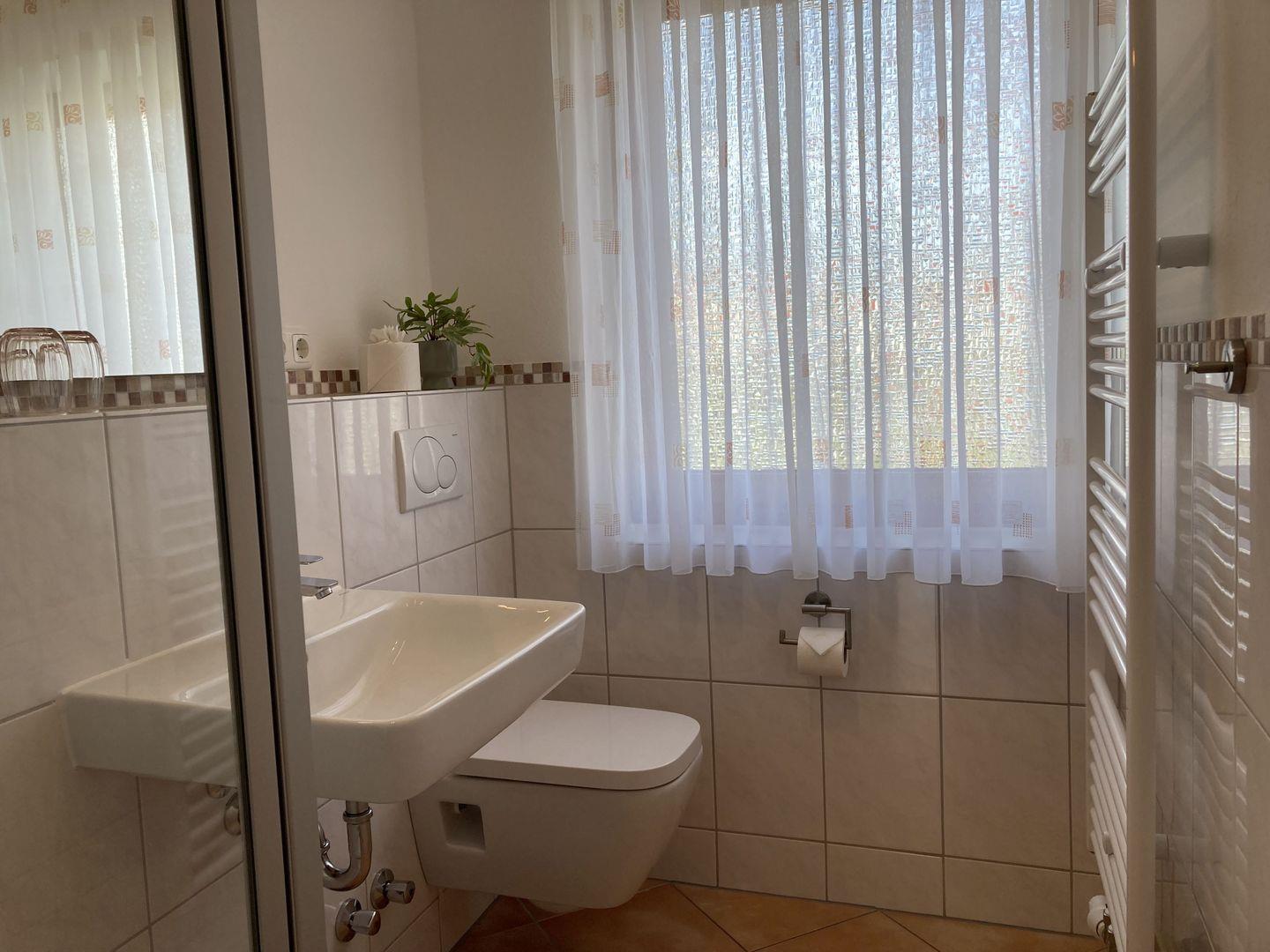 - tageslichthelles Badezimmer mit ebenerdiger Dusche und WC