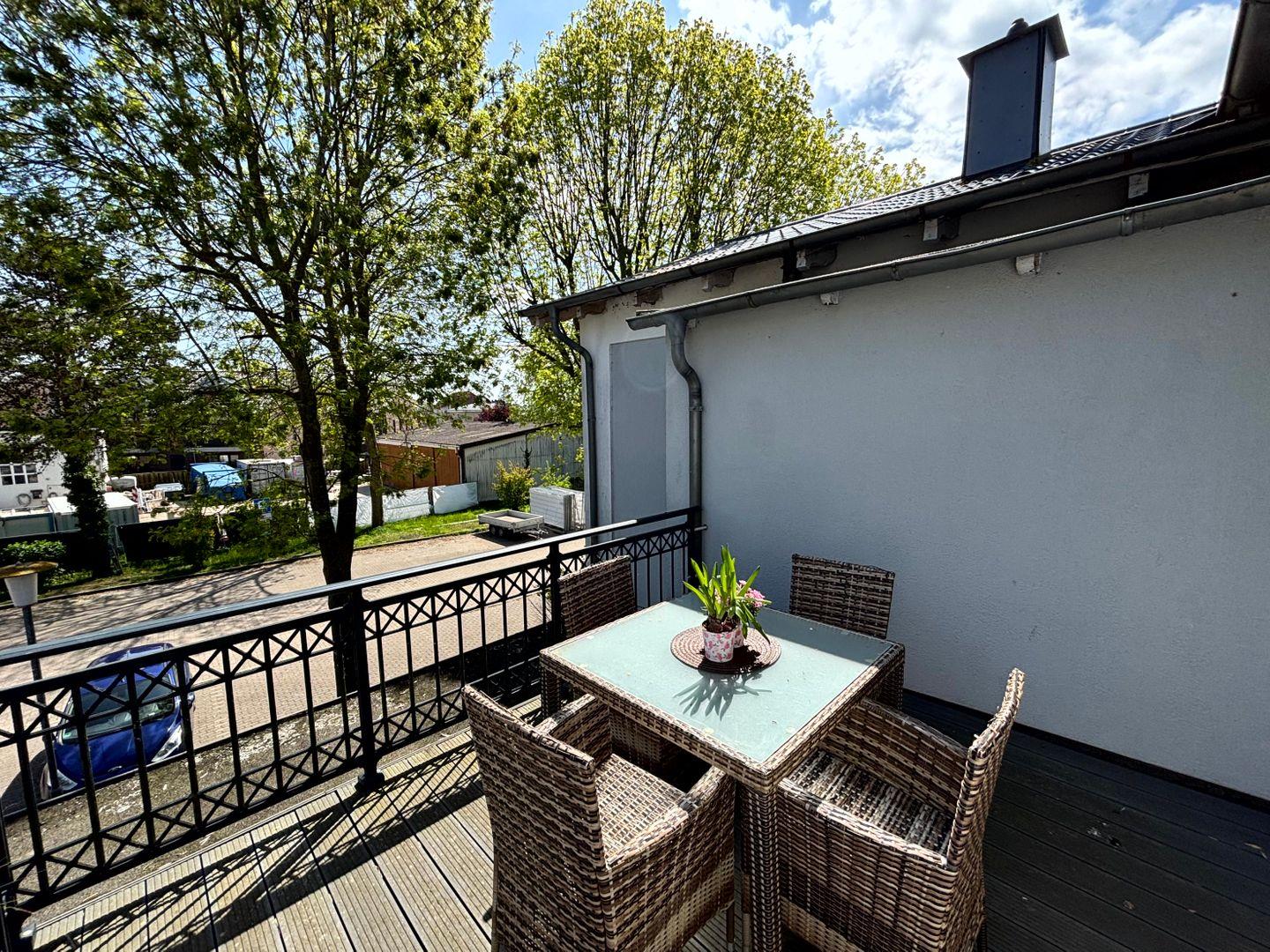 Auszeit im Freien. Balkon mit Gartenmöbeln.