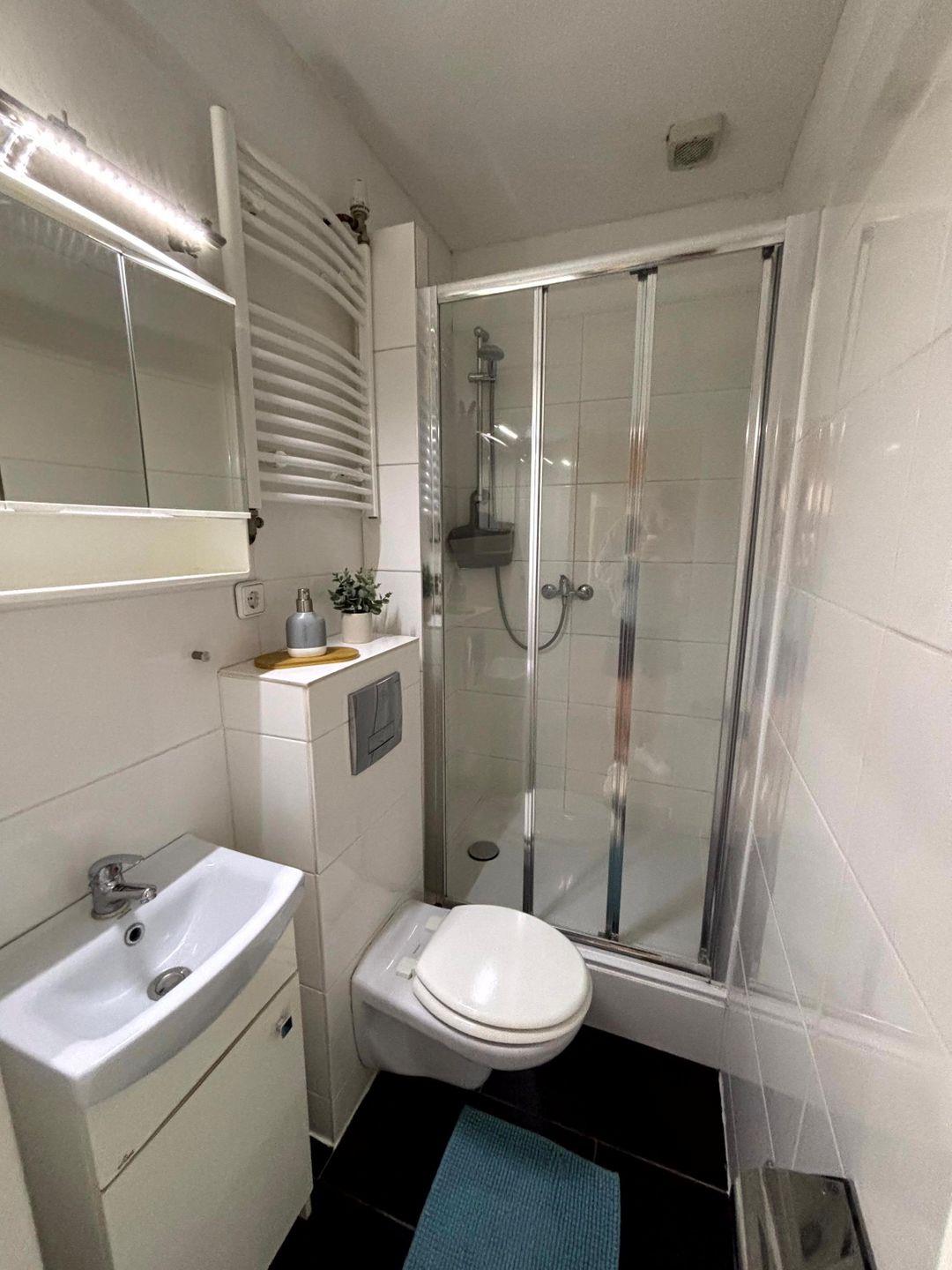 Kompaktes Bad mit Dusche. WC. Waschbecken.