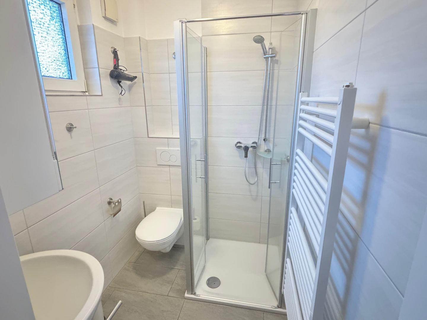 - tagelichthelles Badezimmer mit Dusche, WC und Fenster