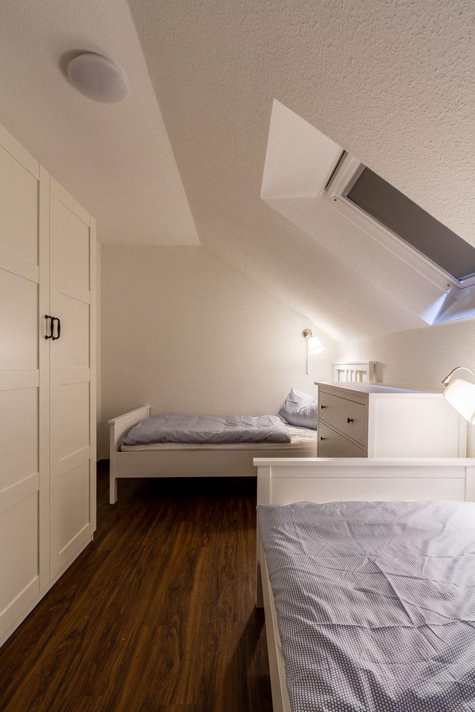 - Schlafzimmer mit 2 Einzelbetten (je 90x200cm), Kommode, Kleiderschrank, Veluxfenster mit Verdunkelungsrollo