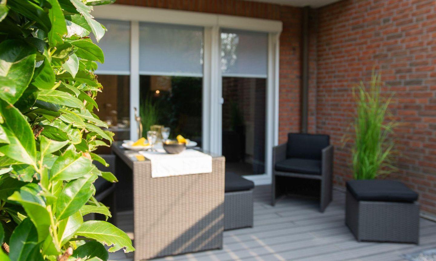 Moderne Ferienwohnung mit Terrasse nahe dem Ostseestrand in Dahme, ideal für entspannte Tage am Meer.