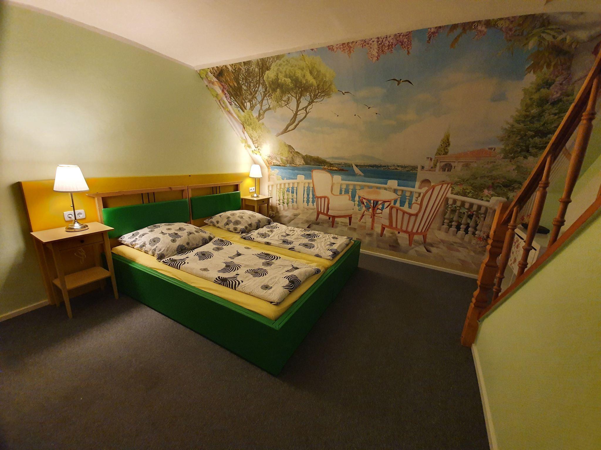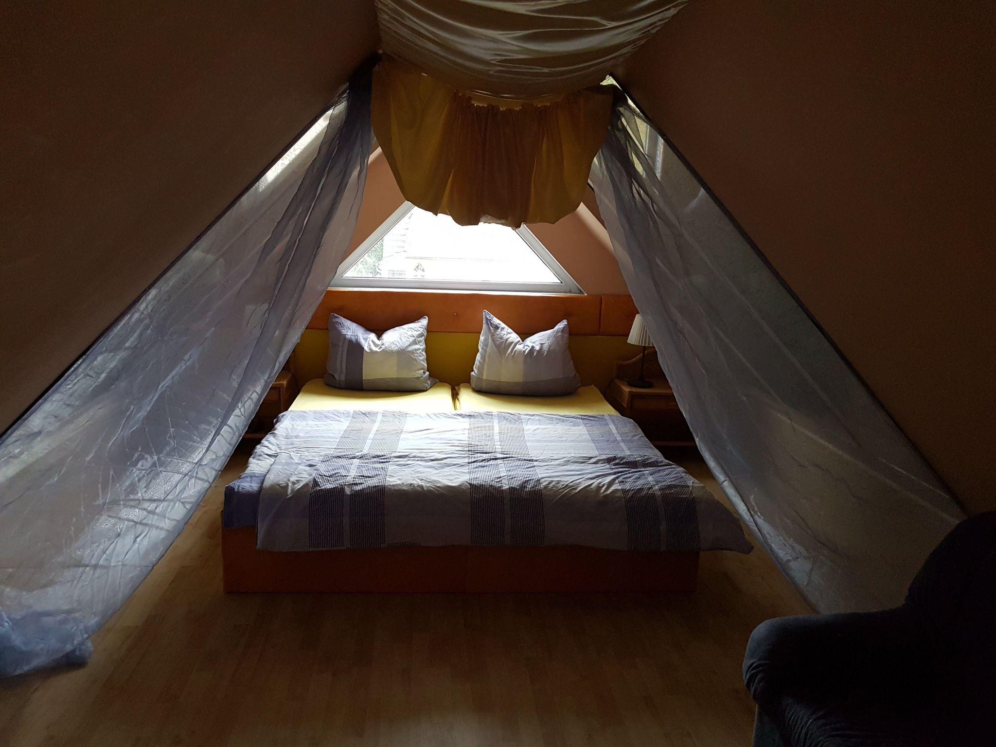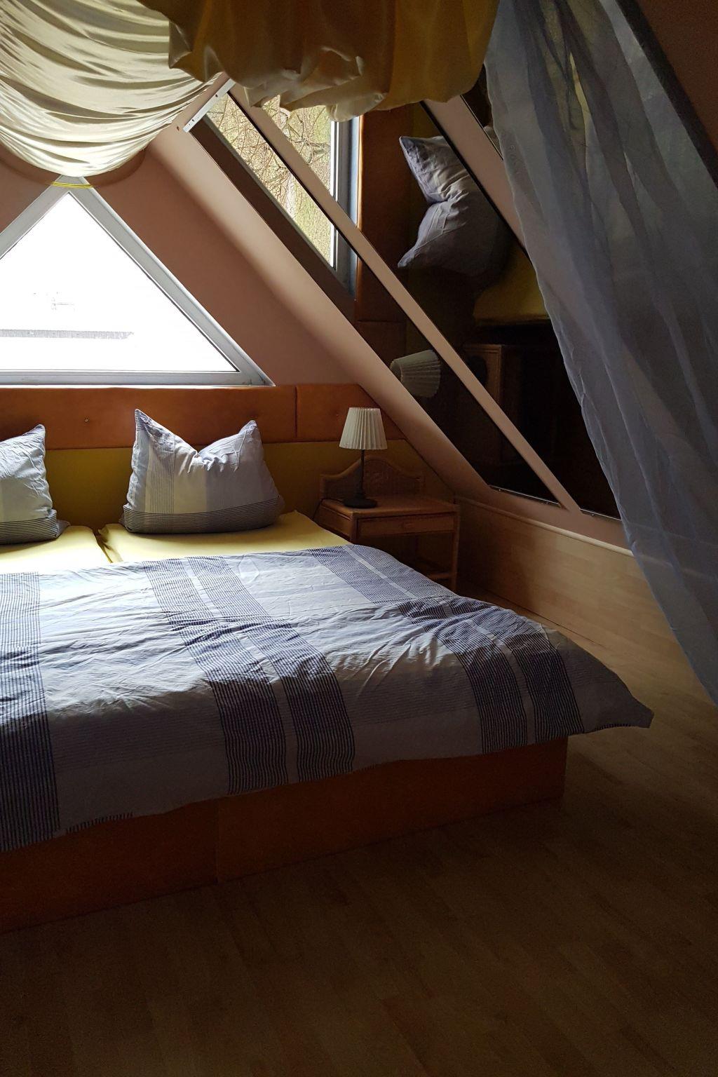 Spitzboden ca. 20m² Nutzfläche mit Sitzgruppe, Tisch und Doppellbett. Bettwäsche, Handtücher sowie Unterhaltungsspiele vorhanden.