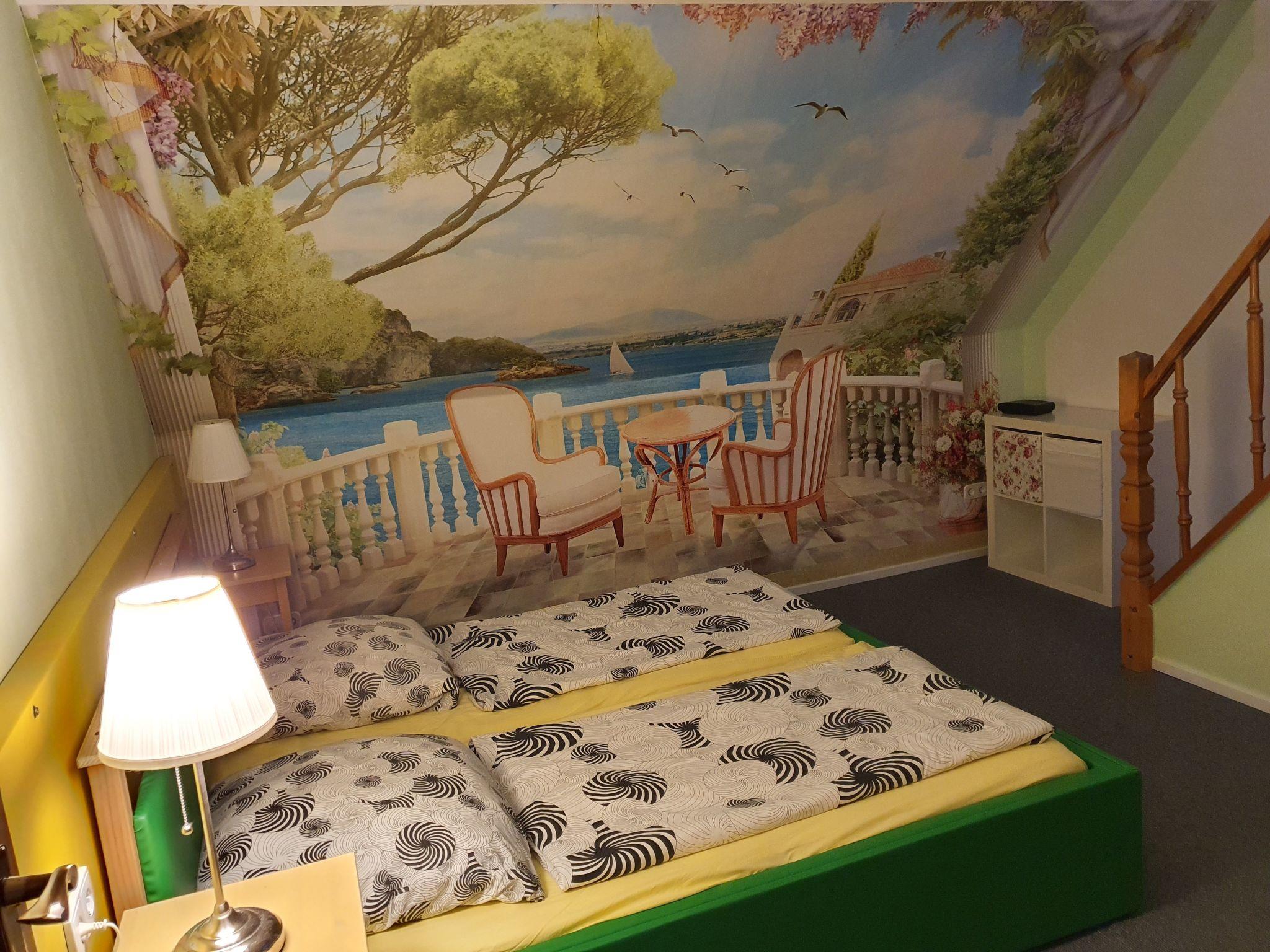 Kinderzimmer 12m² mit einem Hochbett für 2 Kinder ( 1x2 Meter Betten) , und einem weiteren Kinderbett fürs 3 Kind (Kinderreisebett oder Wiege auf Wunsch vorhanden). Ankleidezimmer mit Doppelbett, auch als 2 Schlafzimmer geeignet.