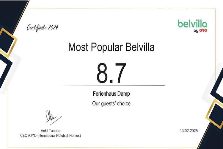 Liebevoll eingerichtetes Nichtraucher Zeltdachhaus mit Platz für 6 Personen im Ferienhausgebiet des beliebten Ferienortes Damp an der Kieler Bucht, das im Winter 2023 mehr Wohnfläche bekommen hat und eine neue und moderne Wohnzimmereinrichtung. Neben einer komplett eingerichteten Küche - inkl. Waschmaschine - und einem Duschbad ist das Haus mit einem Kamin und einer gemütlichen Sitzecke ausgestattet. Der Innenbereich wurde mit Echtholzparkett und Fliesen ausgestattet. An der mit Teppichfliesen rutschfest gemachten Treppe ist eine Kindersicherung angebracht. Zusätzlich enthält das Haus eine kindgerechte Ausstattung inkl. Babyreisebett und Hochstuhl. Das Doppelbett wurde im Winter 2023 mit neuen Matratzen ausgestattet und 2 von den Einzelbetten wurden mit elektrisch verstellbaren Lattenrosten nachgerüstet. Zum Haus gehört ein großer Garten, der viel Platz zum Spielen bietet. Eine in 2023 komplett renovierte Terrassenfläche sowie ein separater Grillplatz runden das Angebot dieses einladenden Feriendomizils ab. Der Strand und der Hafen sind nur 600 m vom Ferienpark Damp entfernt, der neu gestaltet an einem der schönsten Strände der Ostsee liegt. Ein Abstellplatz für einen Pkw ist direkt vor dem Haus vorhanden und auch Fahrräder können dort abgestellt werden. Die vielfältigen und spannenden Einrichtungen, wie Meerwasserschwimmbad und Wellnessbereich des nahegelegenen Ferienzentrums können gegen Gebühr mitgenutzt werden. Des Weiteren gibt es vor Ort gegen Gebühr einen Indoorspielplatz, eine Bowlingbahn, eine Wasserskianlage und eine Minigolfanlage. Das Ostseebad Damp liegt 16 km nordöstlich von Eckernförde auf der Halbinsel Schwansen, zwischen der Eckernförder Bucht und der Schlei. Damp befindet sich direkt am schönen, 4 km langen Sandstrand. Daneben gibt es noch einen Aktionsstrand mit Spielen, einen Hundestrand und einen FKK-Strand. Strandkörbe können Sie direkt vor Ort mieten. Zur schleswig-holsteinischen Landeshauptstadt Kiel sind es ca. 50 km. Highlights inklusive: Alle verbrauchsabhängigen Energiekosten (gilt nur für den häuslichen Bedarf) Parkplatz am Haus Kurtaxe bereits im Preis inkludiert Bollerwagen für Kinder - Bettwäsche und Handtücher können auf Wunsch kostenpflichtig dazu gebucht werden. Aktivitäten in der Nähe: Spaß für die ganze Familie garantiert ein Besuch des Entdeckerbads Damp, in dem Kinder gern gesehene Gäste sind, mit Blick auf die Ostsee. Von riesiger Eventrutsche mit Lichtprojektion über Saunalandschaft, Sauna-Wikingerdorf bis hin zum Erlebnis-Kinderbecken zum Experimentieren und Erforschen wird Ihnen hier Abwechslung pur geboten. Sie haben die Qual der Wahl bei der Auswahl der zahlreichen Freizeitangebote: Wellnesseinrichtungen, Abenteuer-Golf, Spielplätze, Spielhallen mit TV-Games, Flipper, Billard und vieles mehr. Lassen Sie sich in der abwechslungsreichen Gastronomie verwöhnen, wenn die eigene Küche mal kalt bleibt.