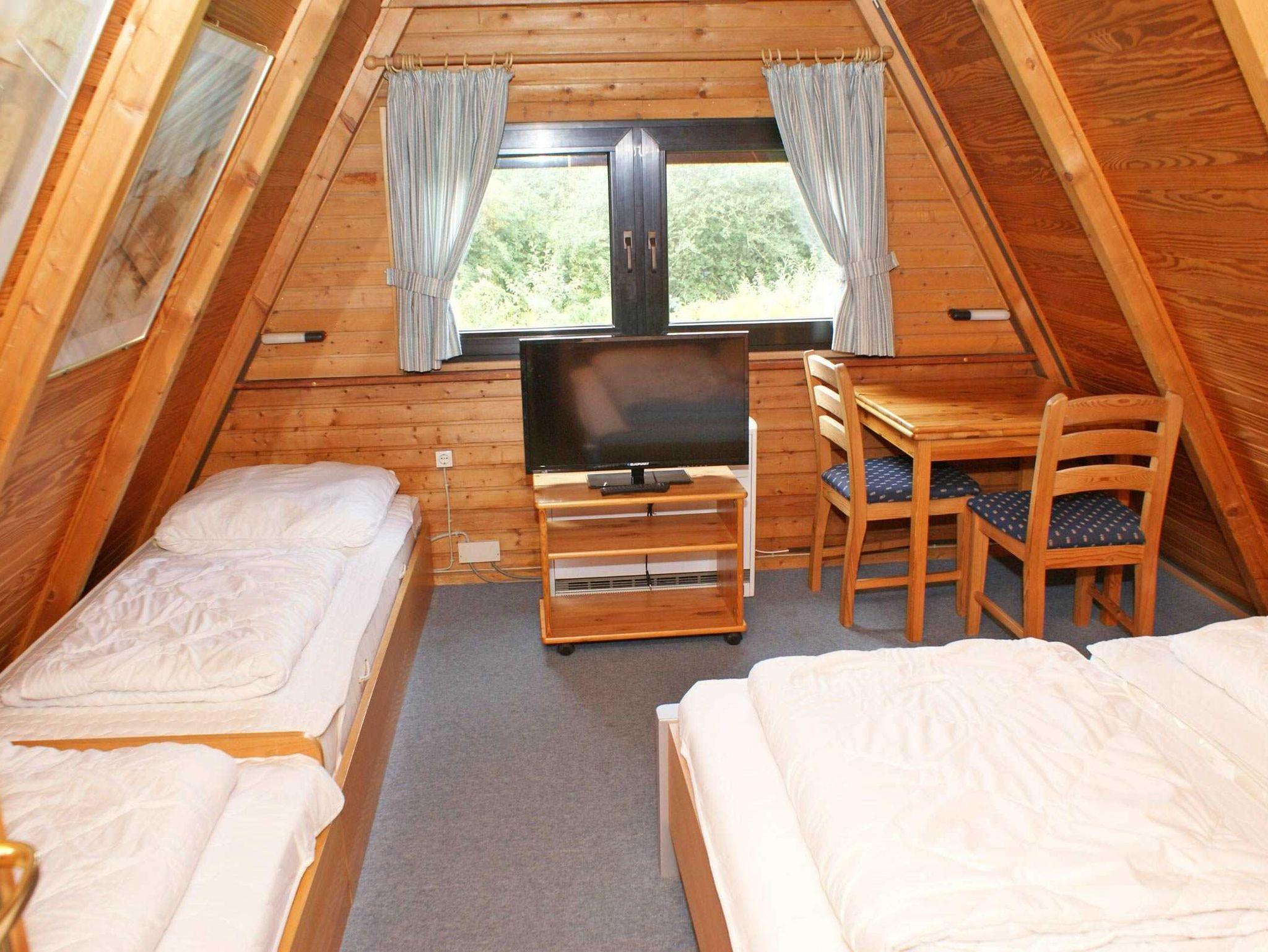 Unser Zeltdachhaus verfügt über zwei getrennte Schlafräume (im oberen Bereich des Hauses), kombiniertes Wohn- und Esszimmer, vollwertige Küche und Terrasse. Ein Kinderreisebett und Kinderhochstuhl sind immer vorhanden und kostenlos nutzbar.
