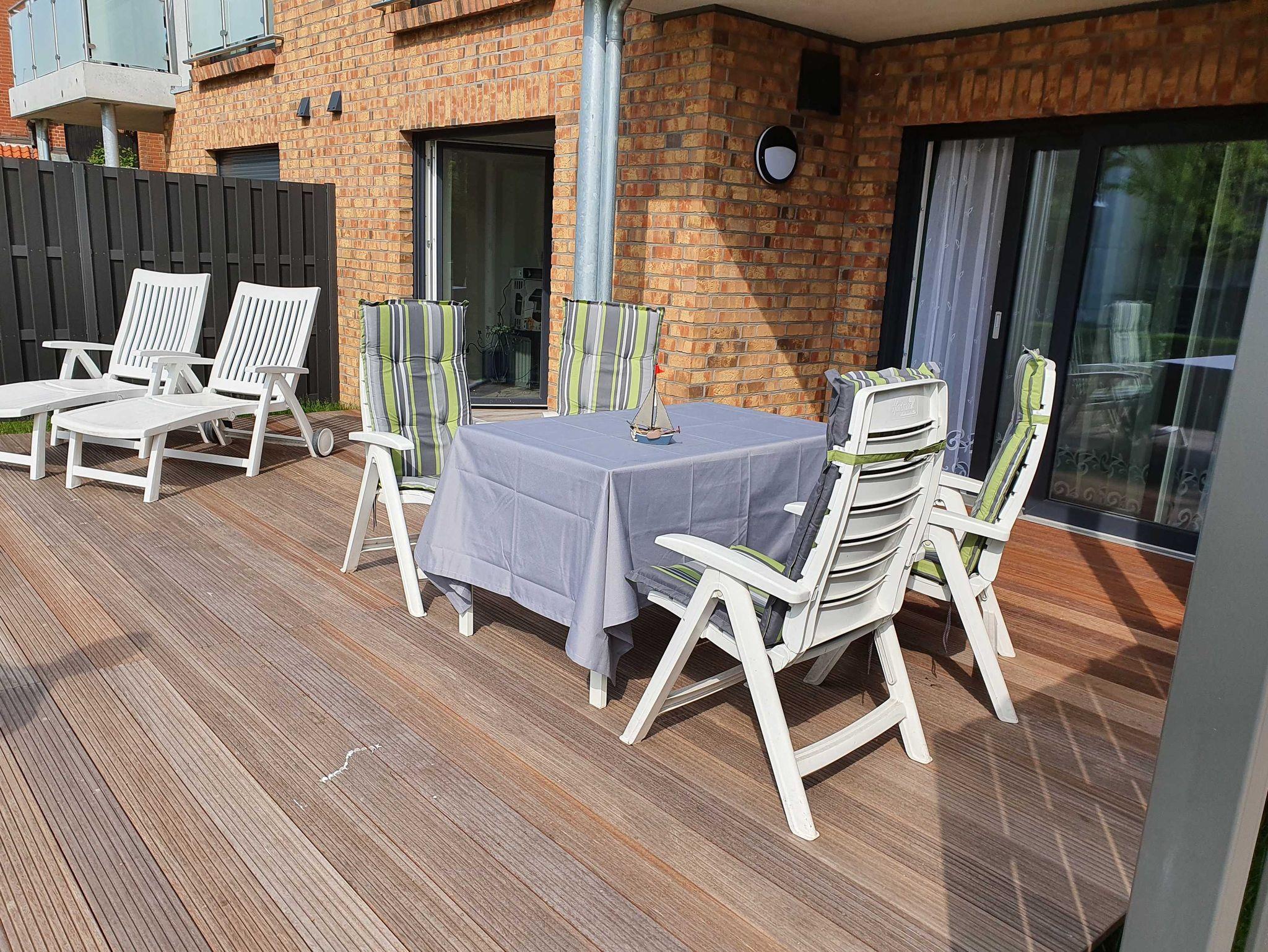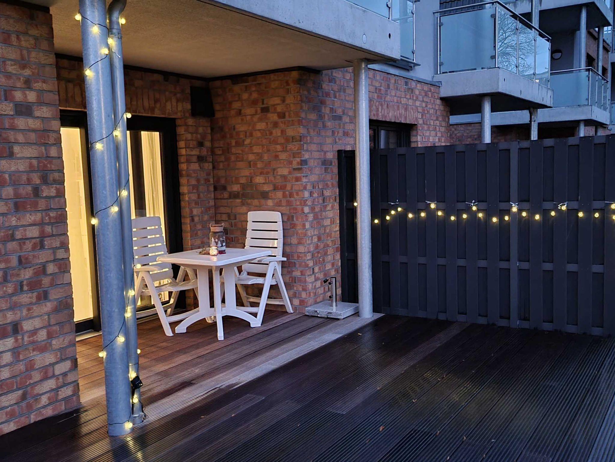 Moderne, neue Nichtraucher-Ferienwohnung für max. 4 (2+2) Personen nur 100m zum Yachthafen und 300m zum Ostseestrand mit großer Terrasse.