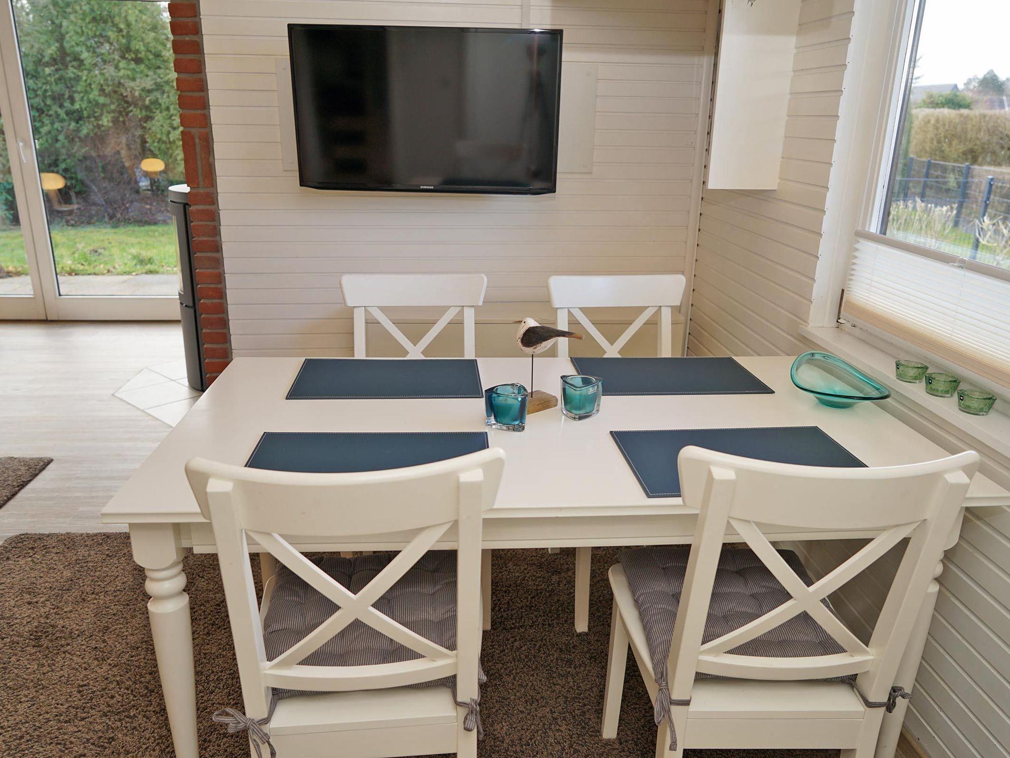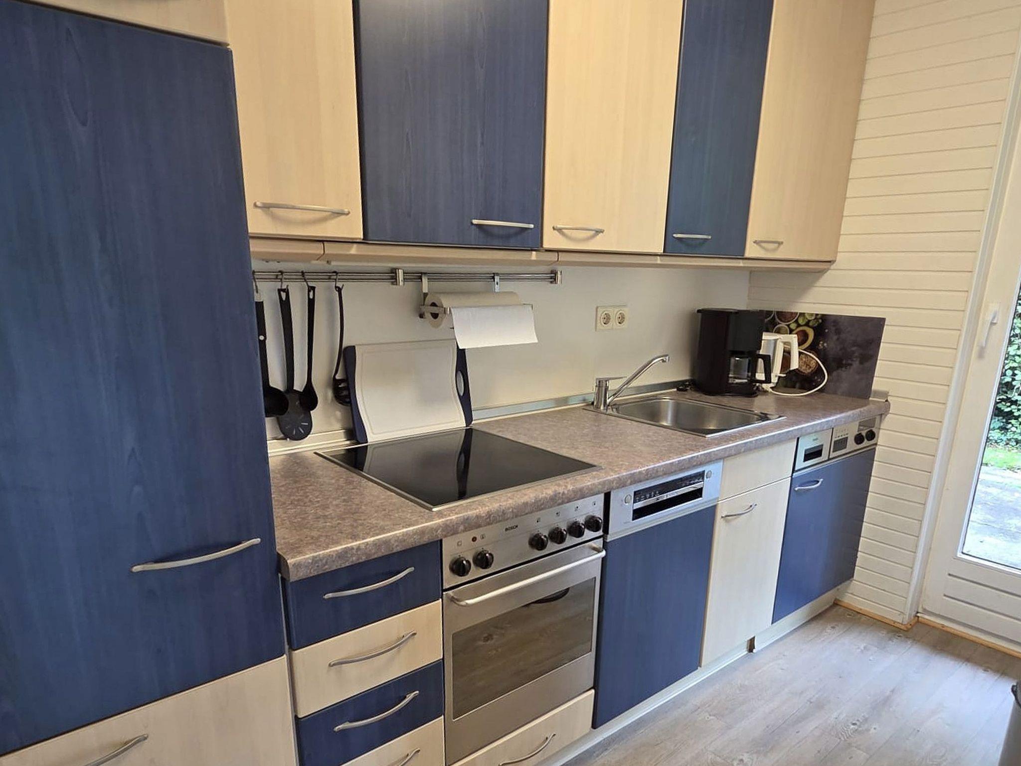 Wohnen auf einer Ebene. Zur Ausstattung gehört eine vollwertige Küche (mit Geschirrspüler und Waschmaschine), 2 getrennte Schlafzimmer (in einem Schlafzimmer befindet sich ein Etagenbett für 2 Personen), Flur, Bad mit Dusche und Wohnzimmer mit Essecke. Der Kamin im Wohnzimmer steht den Gästen zur Verfügung.