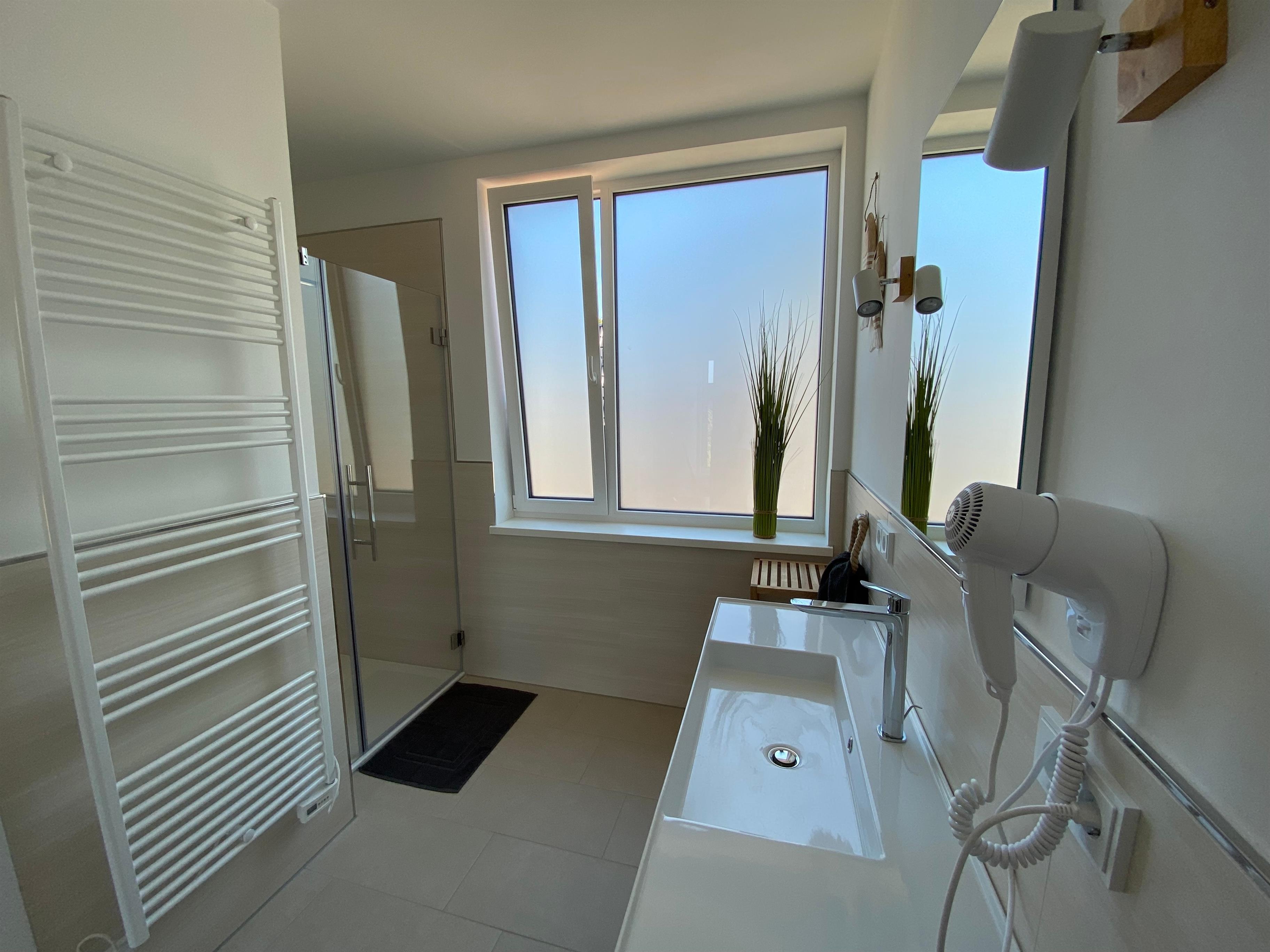 - großes Bad mit Dusche (Regenschauerfunktion und Handbrause) und separatem WC