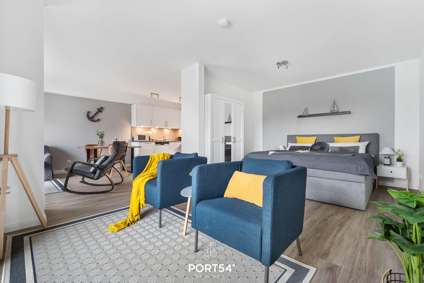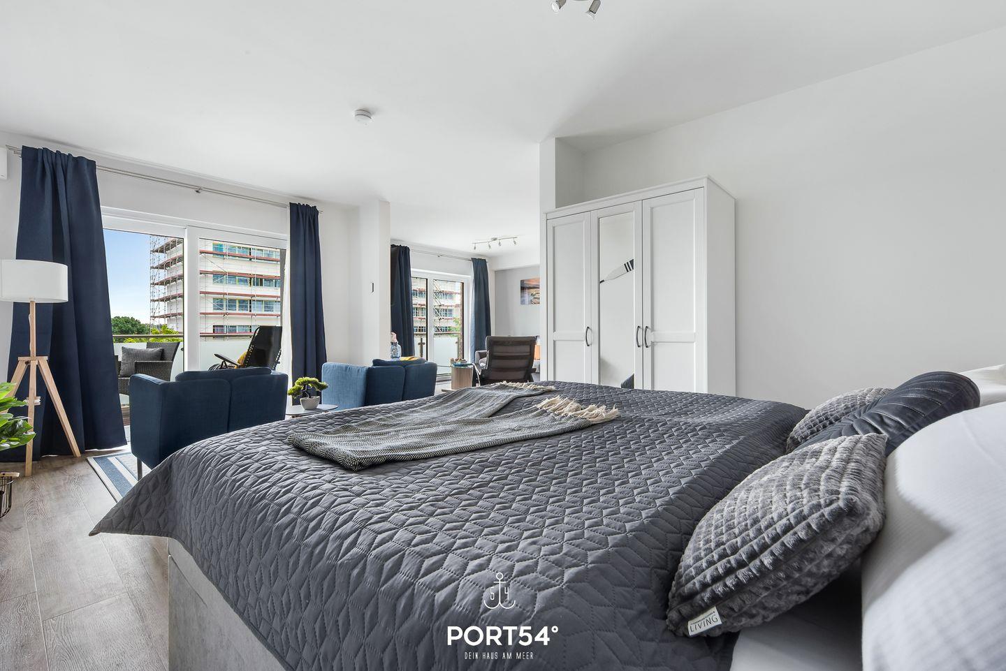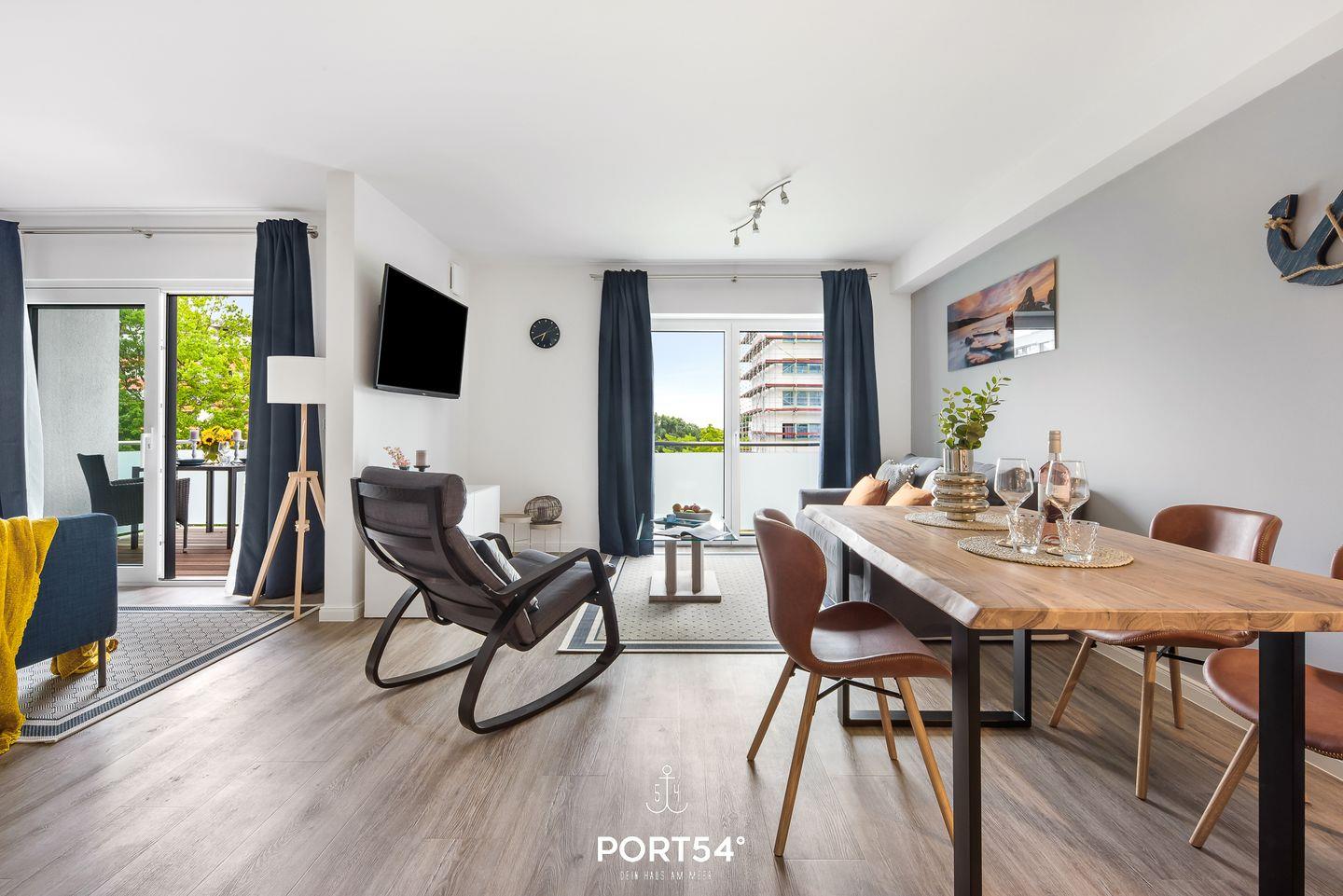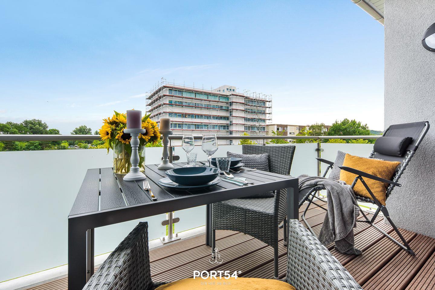 Modernes Loft mit Balkon, Gartenmöbeln, TV und Waschmaschine im OstseeResort Damp.