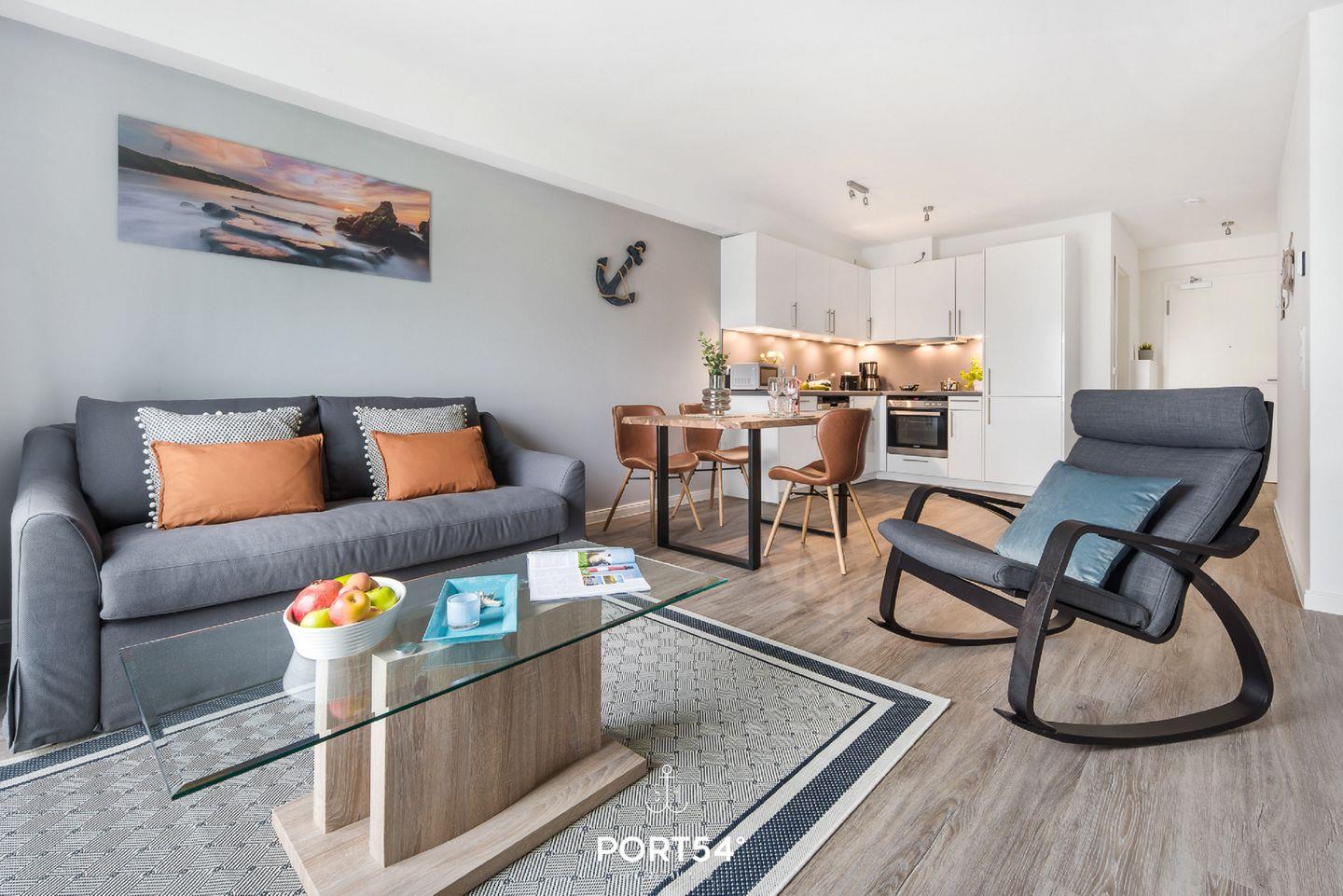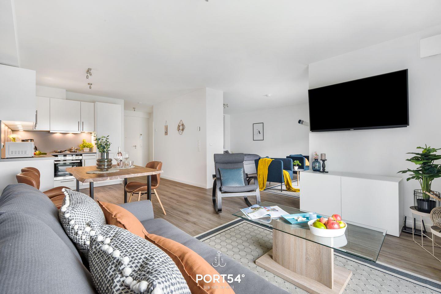 Herzlich willkommen in der modernen Ferienwohnung „Meerzeit“. Die im Neubau gelegene Wohnung bietet auf großzügigen 65m² Platz für 4 Personen und sogar einen vierbeinigen Freund auf Anfrage. Der Schlafbereich erwartet Dich mit einem luxuriösen Boxspringbett (180x200cm), das Dir traumhafte Nächte verspricht. Zusätzlich stehen auf dem gemütlichen Schlafsofa (140x200cm) zwei weitere Schlafplätze bereit, damit Du Deinen Urlaub mit Deinen Liebsten in vollen Zügen genießen kannst.