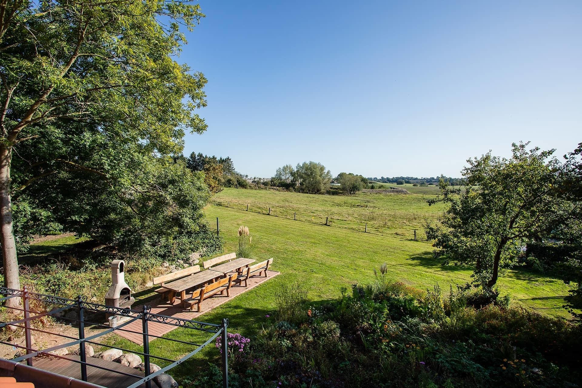 Der 2000 qm große Garten ist ideal für zahlreiche Aktivitäten. Hier können die Kinder beaufsichtigt spielen und auch der Hund oder Ihr Haustier findet seinen Platz. Für alle Personen befinden sich bequeme Gartenmöbel am Ferienhaus. Nicht nur für die Kinder haben wir hier ein großes Trampolin. Für gemeinsame Grillabende finden Sie einen Grillbereich mit Steingrill vor.