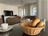 Zur weiteren Ausstattung gehören ein feines Wohnzimmer mit Sofa und TV, WLAN für digitale Entspannung sowie zahlreiche nützliche Utensilien wie Bügeleisen, Waschmaschine und Staubsauger.