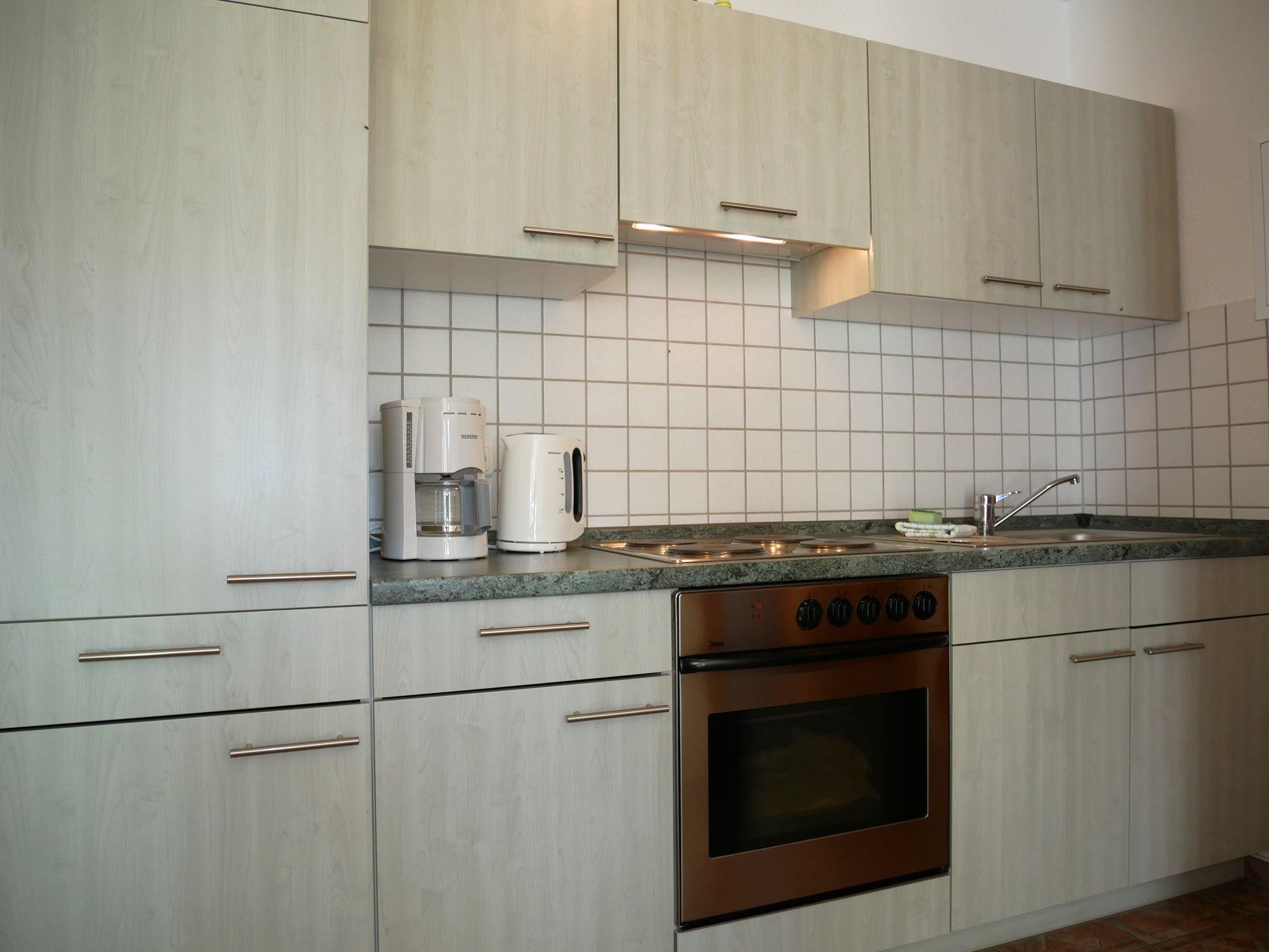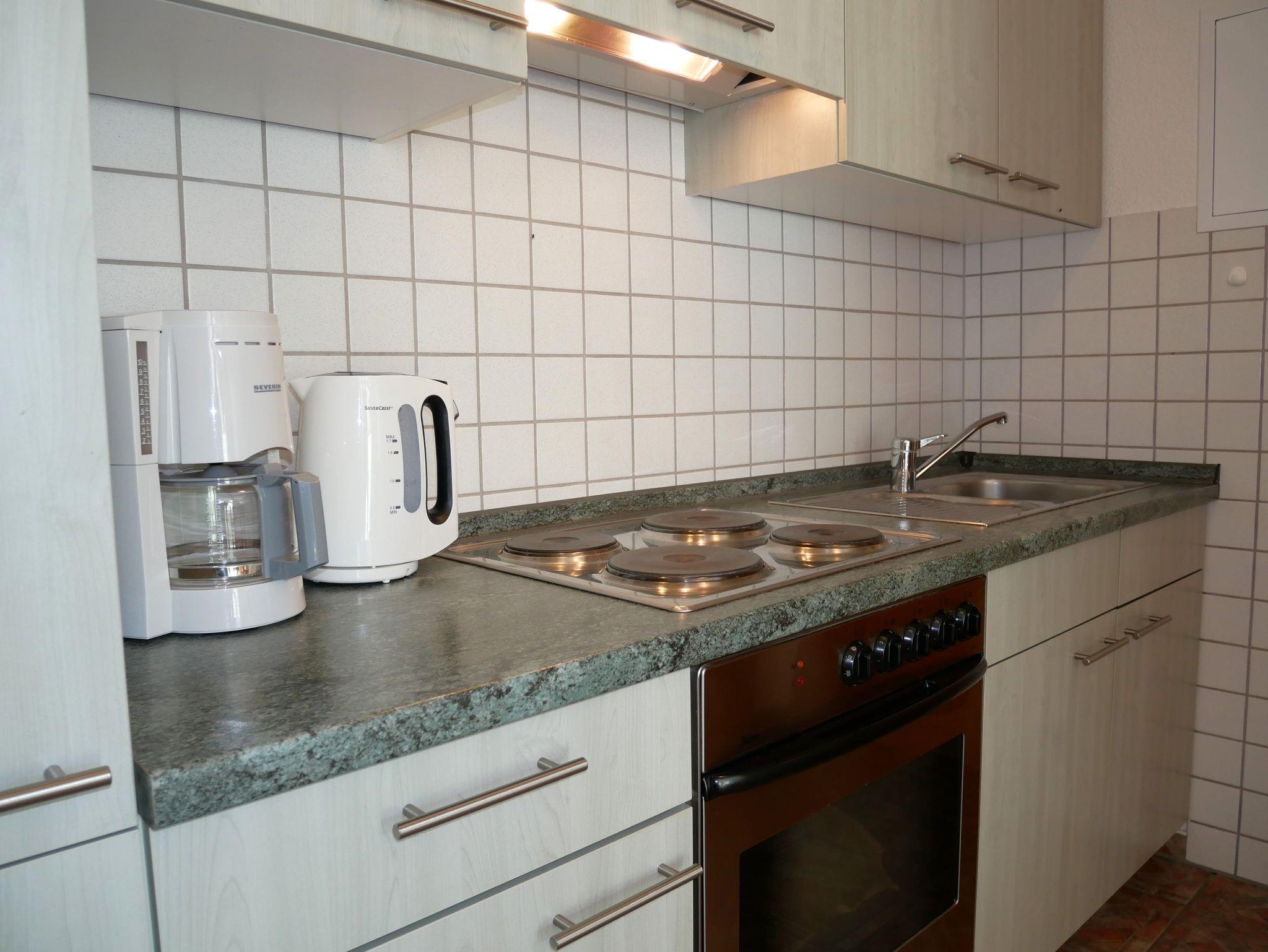 Die offene Küche ist vollständig ausgestattet mit einem Backofen, einem Kühlschrank mit Gefriermöglichkeit, einer Kaffeemaschine, einem Toaster und einem Wasserkocher ? ideal für Selbstversorger. Für die kleinsten Gäste stellen wir auf Anfrage gerne einen Hochstuhl zur Verfügung.