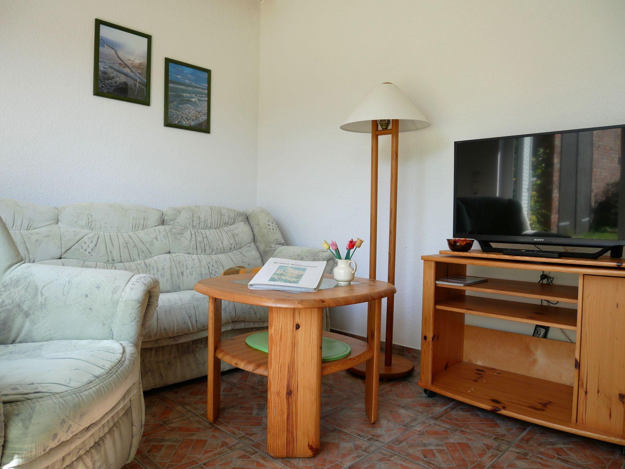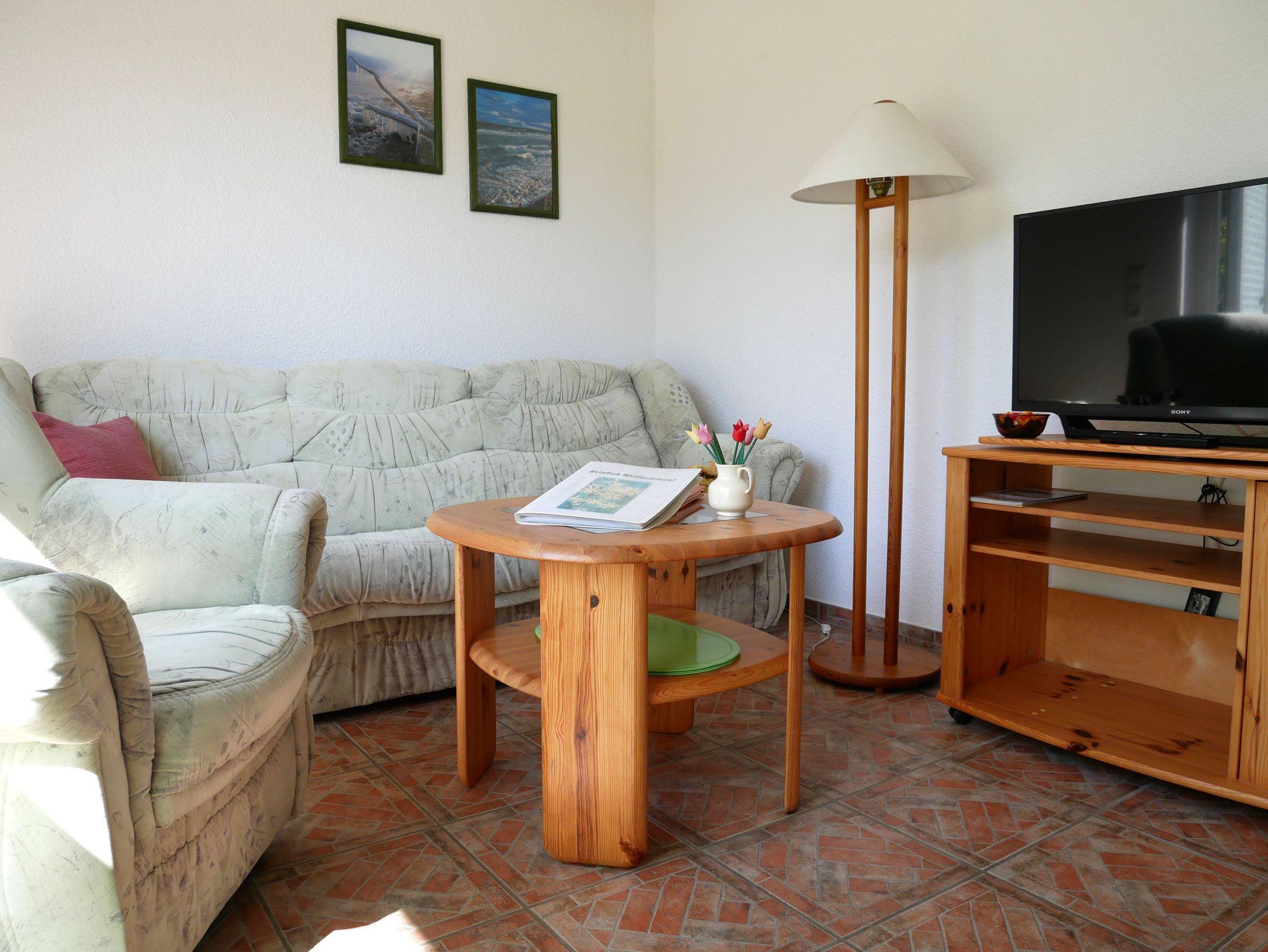 Zur weiteren Ausstattung gehören ein Flachbildfernseher, ein Radio sowie ein CD-Player für gemütliche Abende. Bettwäsche ist im Preis inbegriffen, und bei Ihrer Ankunft erwartet Sie eine Erstausstattung mit Seife und Toilettenpapier. Der Zugang zur Wohnung erfolgt über nur eine Stufe, sodass sie nahezu ebenerdig und auch für Gäste mit eingeschränkter Mobilität gut geeignet ist.