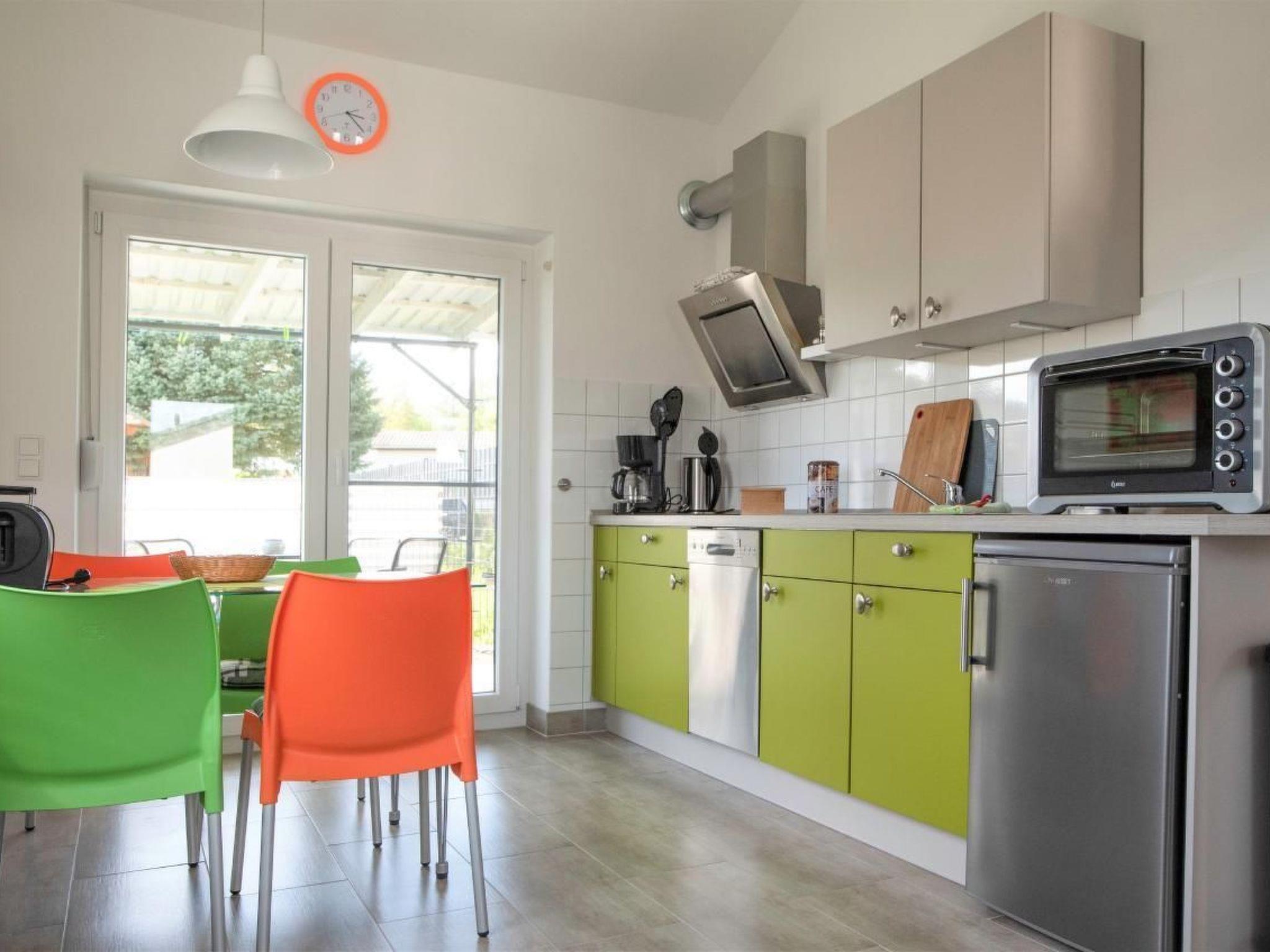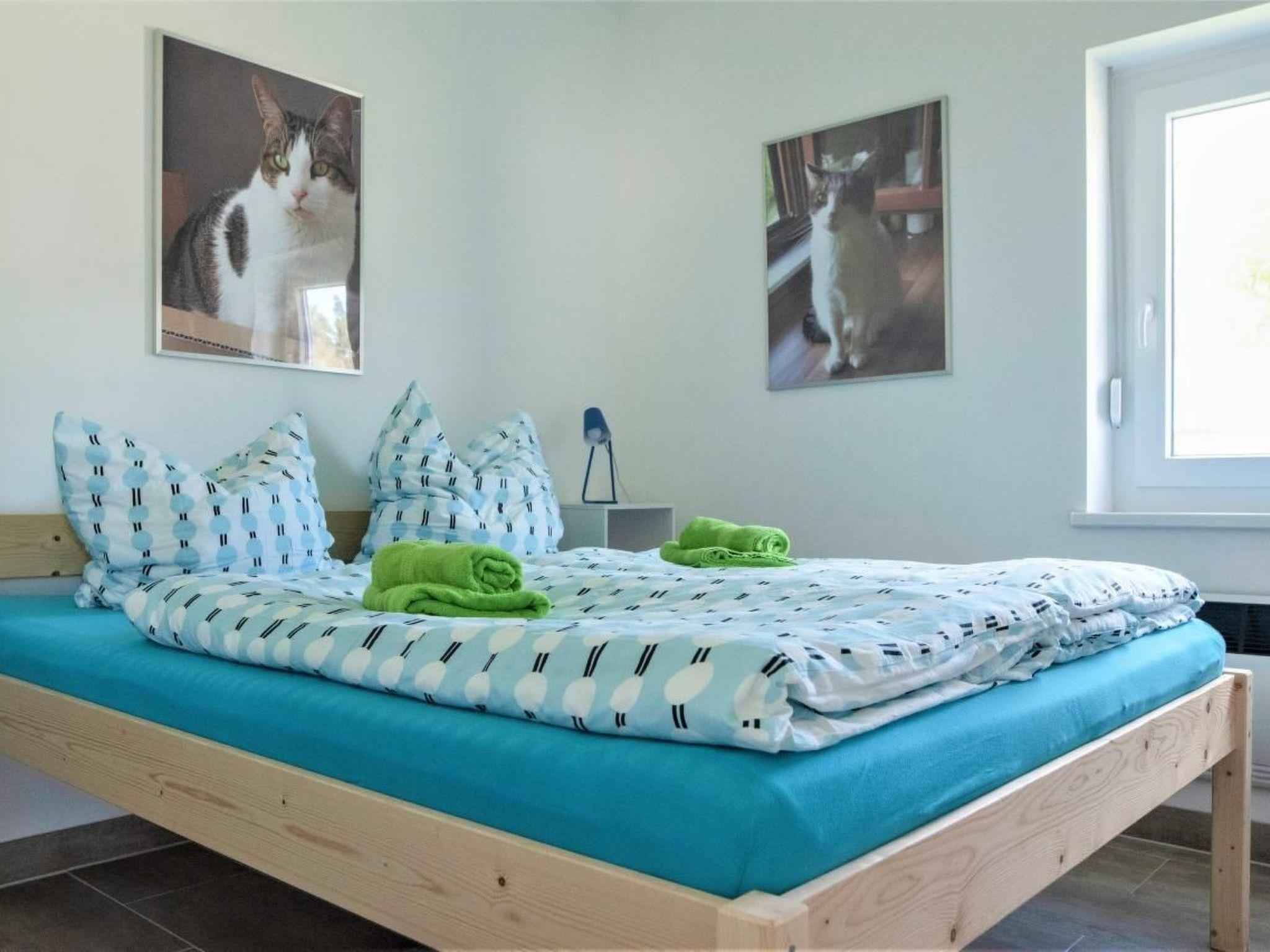 Bitte beachten Sie, dass wir auch ausdrücklich Hundehaltern den Urlaub bei uns gestatten. Urlaub mit Hund bedeutet: Wenn sich kein Mensch im Ferienhaus befindet, befindet sich auch kein Hund im Haus! Tiere werden nicht in unseren Häusern eingesperrt, sondern sind immer an der Seite ihrer Halter. Bei uns sind Kinder unbedingt erwünscht. Bringen Sie bei Bedarf Ihr Zustellbettchen einfach mit. Bitte packen Sie auch einen Koffer für Ihre vierbeinigen Begleiter, da wir keine Tierutensilien zur Verfügung stellen.Die Sonnenerrasse ist nach Südwesten ausgerichtet und mit Gartenmöbeln und einem Sonnensegel ausgestattet. Das Grundstück ist mit einem Zaun umfriedet und somit auch für Kinder bestens geeignet. Die Zaunhöhe von 1m gestattet den Hunden freien Auslauf auf dem 200 m² großem Grundstück. Direkt am Ferienhaus auf dem Weg können Sie Ihr Auto abstellen.Der ebenerdige vollgeflieste Bungalow ist ca. 50 m² groß. In der Wohnküche mit komplett eingerichteter Küche und Essplatz befindet sich ein Zweisitzer aus Leder. Ein Minibackofen, ein Cerankochfeld, eine Filterkaffeemaschine und ein Toaster gehören zur Kücheneinrichtung. In der Schlafstube können Sie auf dem extra hohen Doppelbett (160X200) relaxen und süß träumen. Das Bad hat eine moderne ebenerdige Dusche und ein Fenster. Zwei Sat-TV und ein Internet-Radio mit USB-Anschluss komplettieren die technische Ausstattung. Verbinden Sie Ihr Handy mit dem Radio und schon hören Sie Ihre Musik. Nicht nur im Haus sondern auch auf dem gesamten Grundstück steht Ihnen W-Lan zur Verfügung. Bei Kälte sorgt eine moderne Elektroheizung für mollige Wärme. Besuchen Sie uns einfach! Überzeugen Sie sich selbst!KurzbeschreibungSonstiges : Nichtraucherhaus