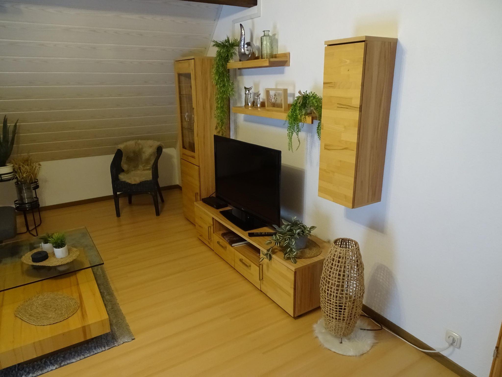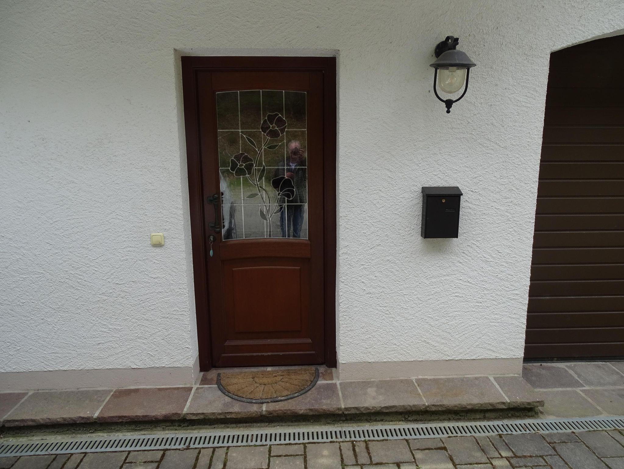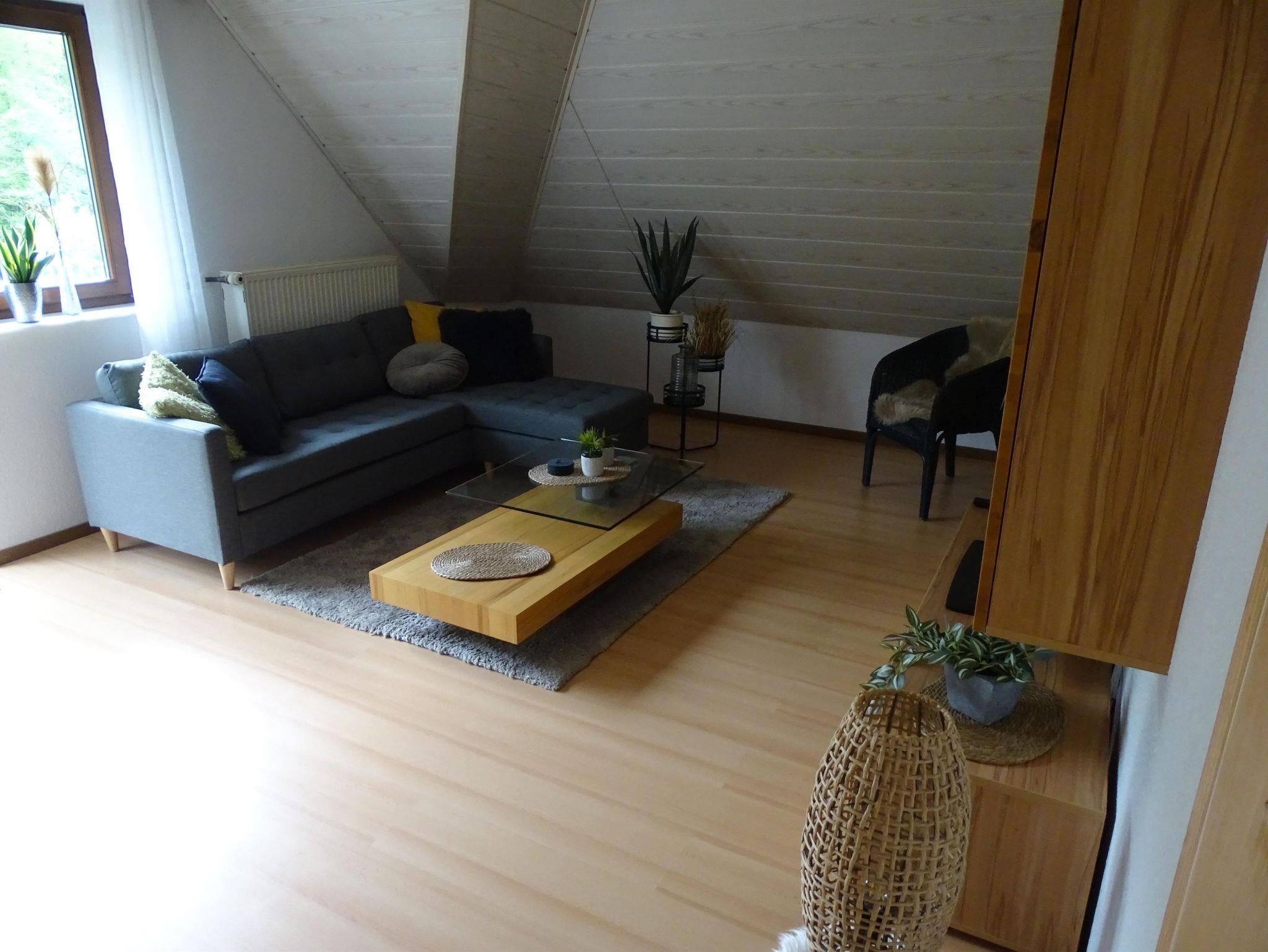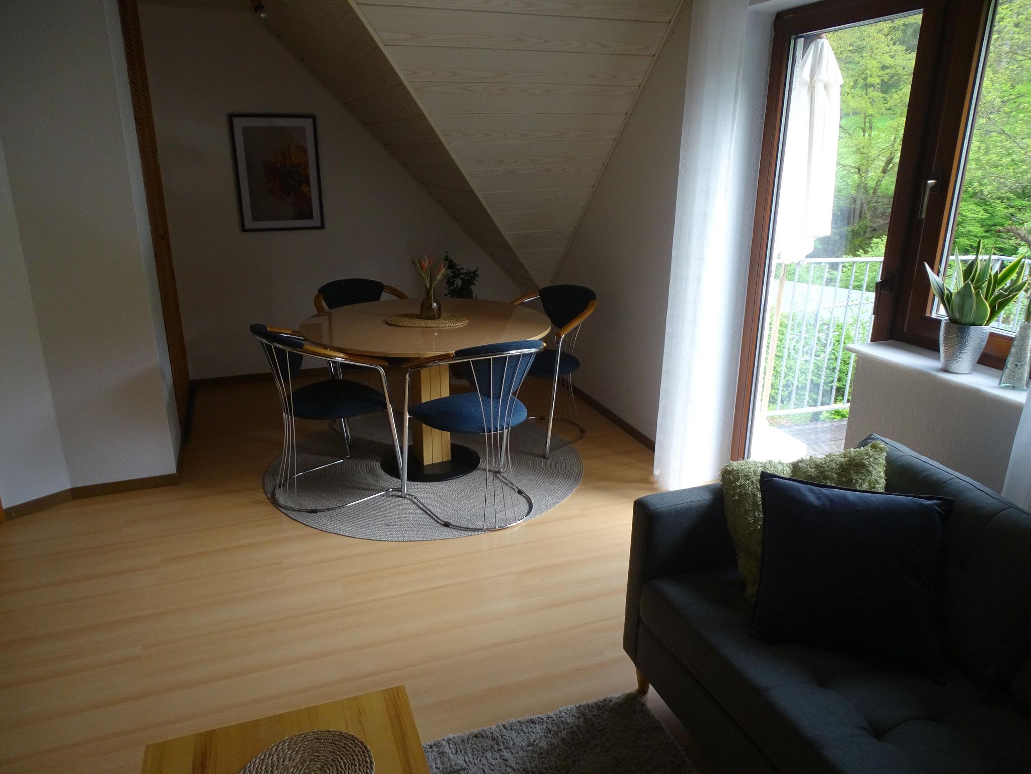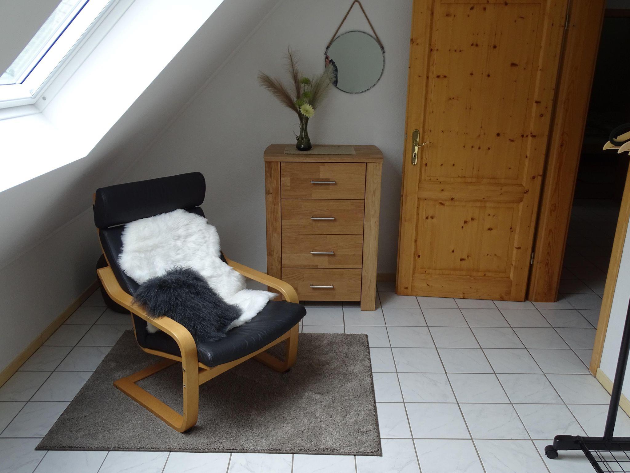 Ferienwohnung mit seperaten Eingang, Treppenhaus, zwei Schlafzimmer mit jeweils zwei Betten,eine Küche,ein Badezimmer und ein Wohn und Essbereich.