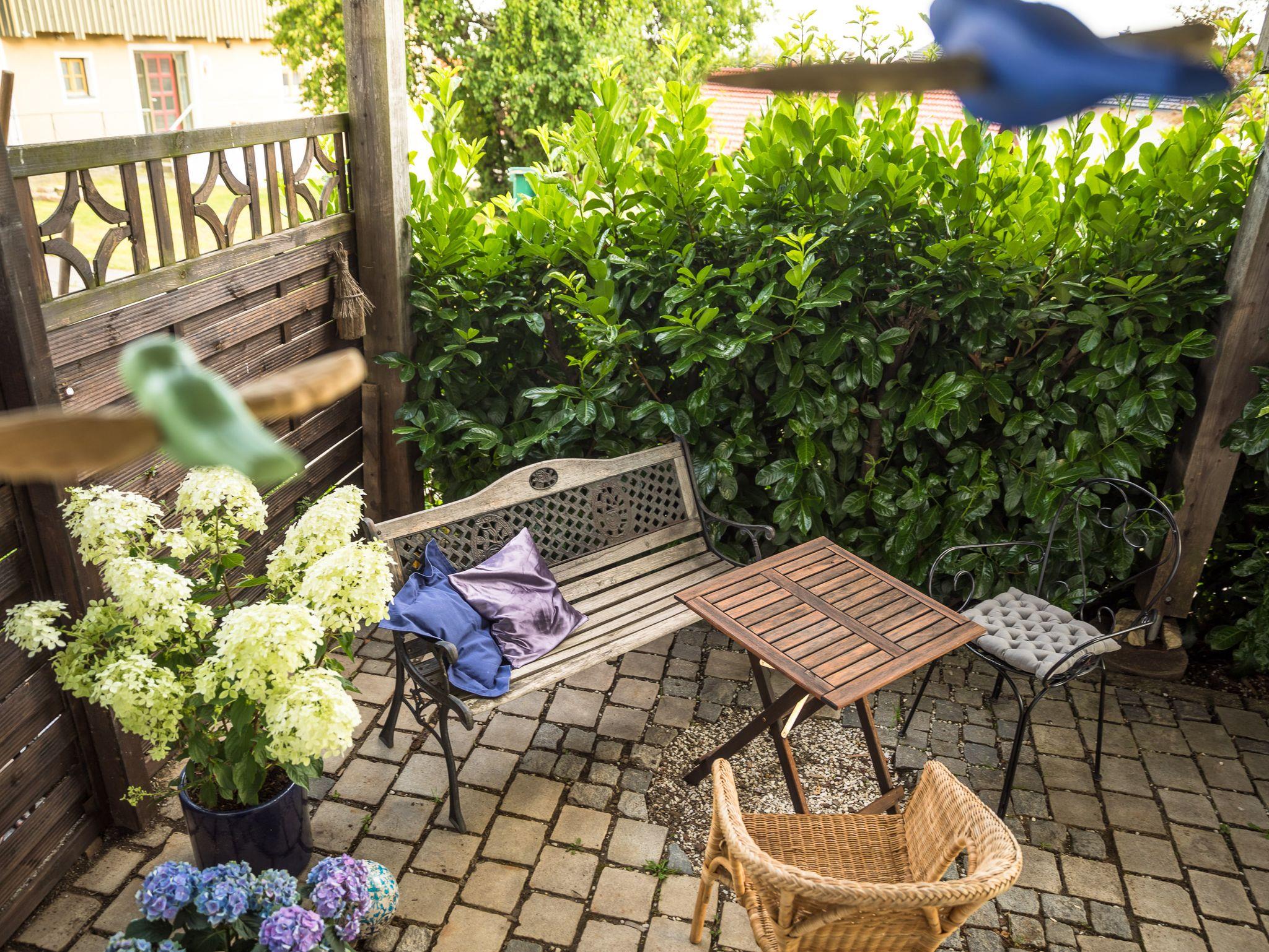 Für die kleinen Gäste gibt`s gegenüber einen kleinen Spielplatz mit Tischtennisplatte und eine große Spielwiese hinter dem Haus, sowie einen Bolzplatz (Fußball) am Ort.