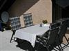 Sie verfügen über einen großen Balkon mit Balkonmöbeln und Sonnenschirmen.