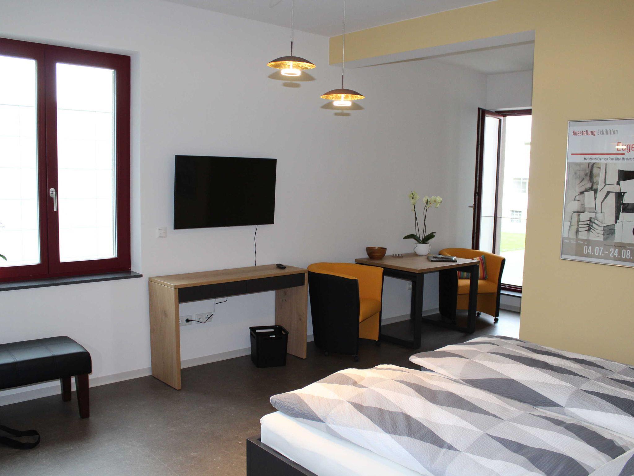 In unserem Neubau direkt gegenüber des UNESCO Weltkulturerbes befinden sich die beiden Appartements. Schon beim Frühstück haben Sie das Prellerhaus und die berühmte Brücke im Blick und können die unmittelbare Nähe zum Bauhaus genießen.