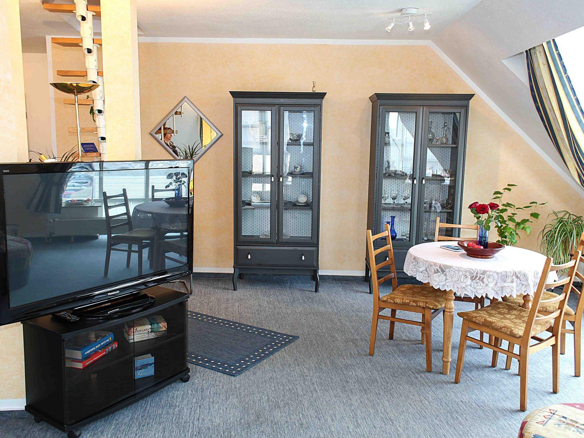 Die Ferienwohnung im 3. Obergeschoss eines 2004 errichteten Hauses mit einer Wohnfläche von 50m² wurde neu eingerichtet und ist ideal für 2 Personen, auf Wunsch ist auch eine Aufbettung bis 4 Personen möglich. Die Wohnung ist ganzjährig zu mieten. Die Ferienwohnung verfügt über einen kombinierten Wohn- und Schlafraum mit einem Doppelbett, einer komplett eingerichtet Küche (inkl. Kühlschrank, Mikrowelle, Herd). Das Bad ist mit einer Dusche, Toilette und einer Waschmaschine ausgestattet.