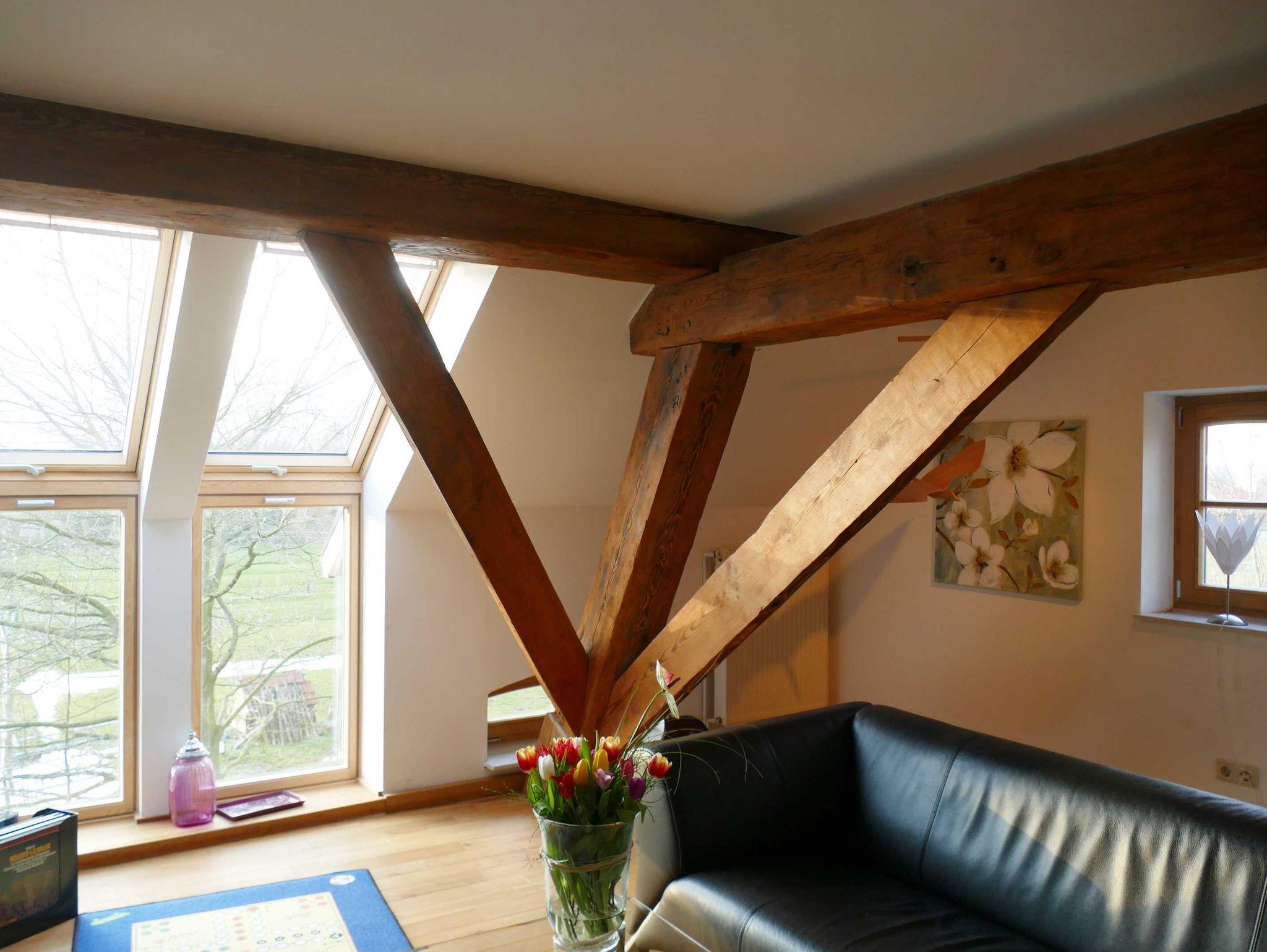 Den Charme der Geschichte des Gebäudes erleben Sie hautnah zwischen Originaltüren von 1900 und unter den historischen Balken.