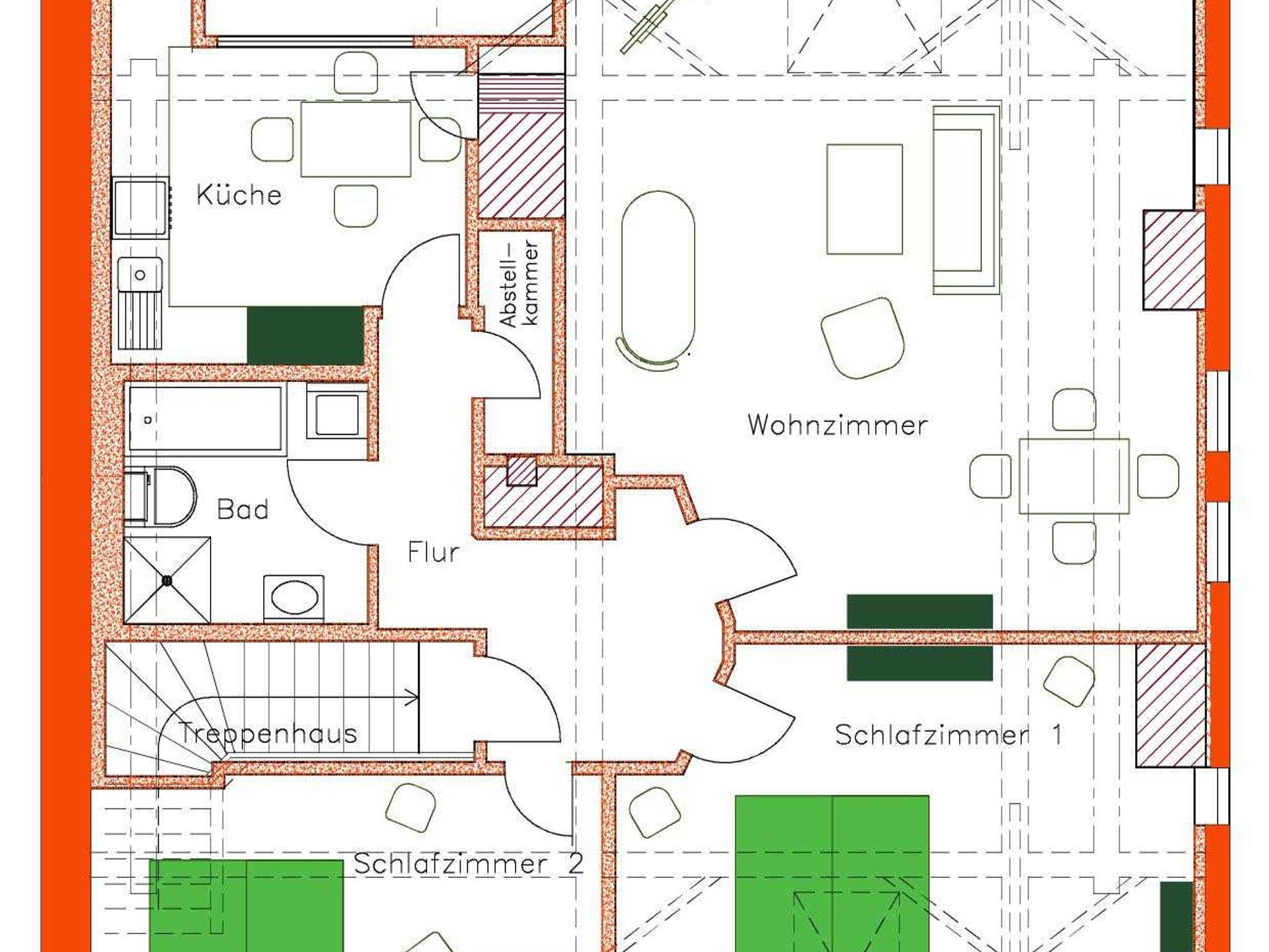 erwartet Sie eine großzügige Wohnung mit 2 Doppelbetten auf 106 m²