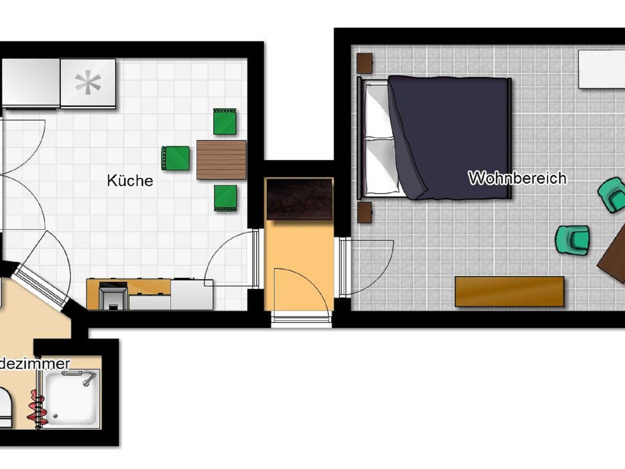 Sie brauchen eine größere Wohnung für 4 bis 5 Personen? Kein Problem – bei Bedarf können die beiden Wohnungen über eine Zwischentür miteinander verbunden werden.