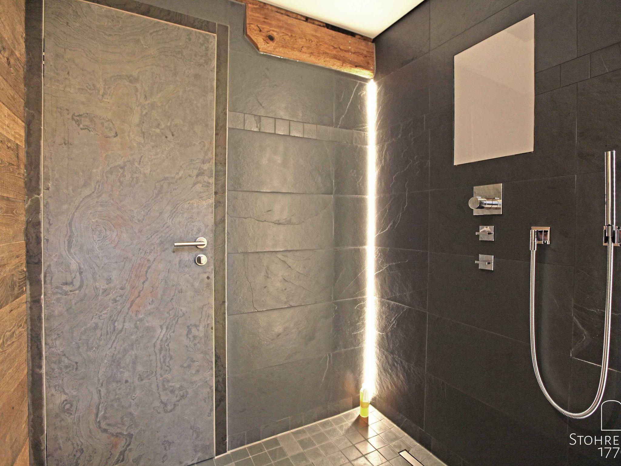 Auch aus dem großzügigen Flur erreichen sie eines unserer Schlafzimmer (30qm) mit einem Doppelbett (1,80 x 2,00), sowie einem Einzelbett (0,90 x 2,00) mit direktem Zugang in den großen 1.000 qm großen Garten. Daran schließt sich das geschmackvolle Bad (8qm) mit Fußbodenheizung und Handtuchtrockner, welches mit hochwertigstem kanadischem grünen Schiefer gefliest ist, an. Neben der Dusche mit Dornbracht Armaturen beeindruckt auch das exklusive Waschbecken aus Onyx. Hochwertige Handtücher stehen selbstverständlich für jeden Gast zur Verfügung.