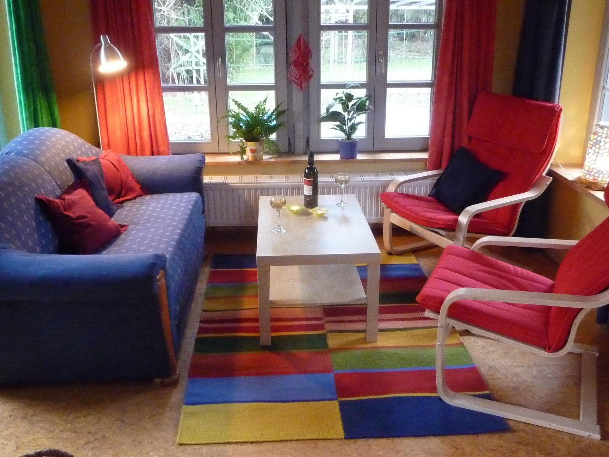 Das moderne, gemütliche Haus bietet Platz für bis zu 4 Personen und verfügt über: • Doppelbett und Schlafsofa • Kinderhochstuhl • Kaminofen • TV-Gerät mit DVD-Spieler, Radio • Telefon- und Internetanschluß Außerdem stehen Ihnen zur Verfügung: • Waschmaschine im Haupthaus • Gartengrill • Feuerkorb • Gartenmöbel, Liegestühle