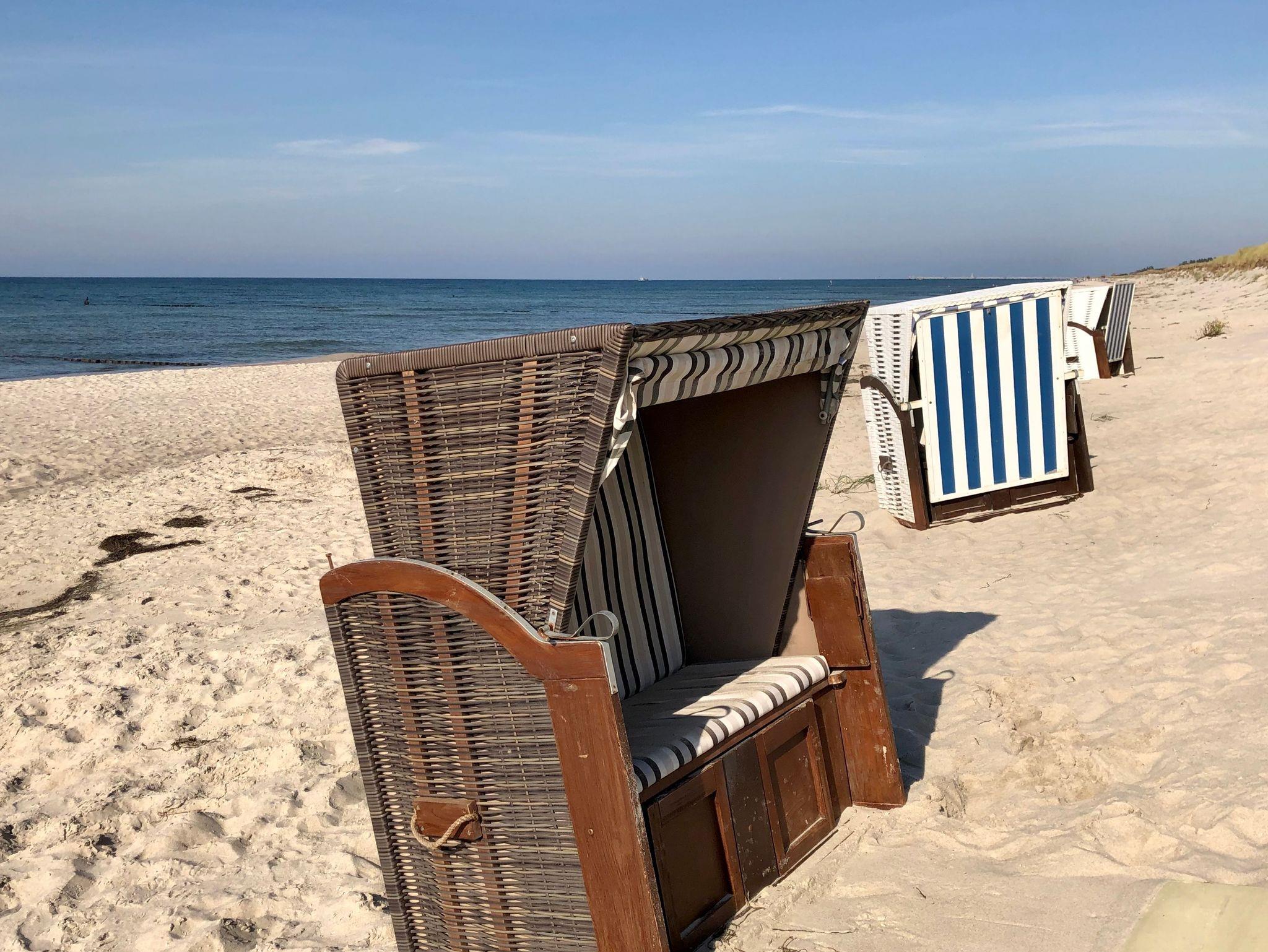Komfortables Ferienapartment mit Balkon, Kamin und Strandkorb am feinsandigen Ostseestrand in Dierhagen.