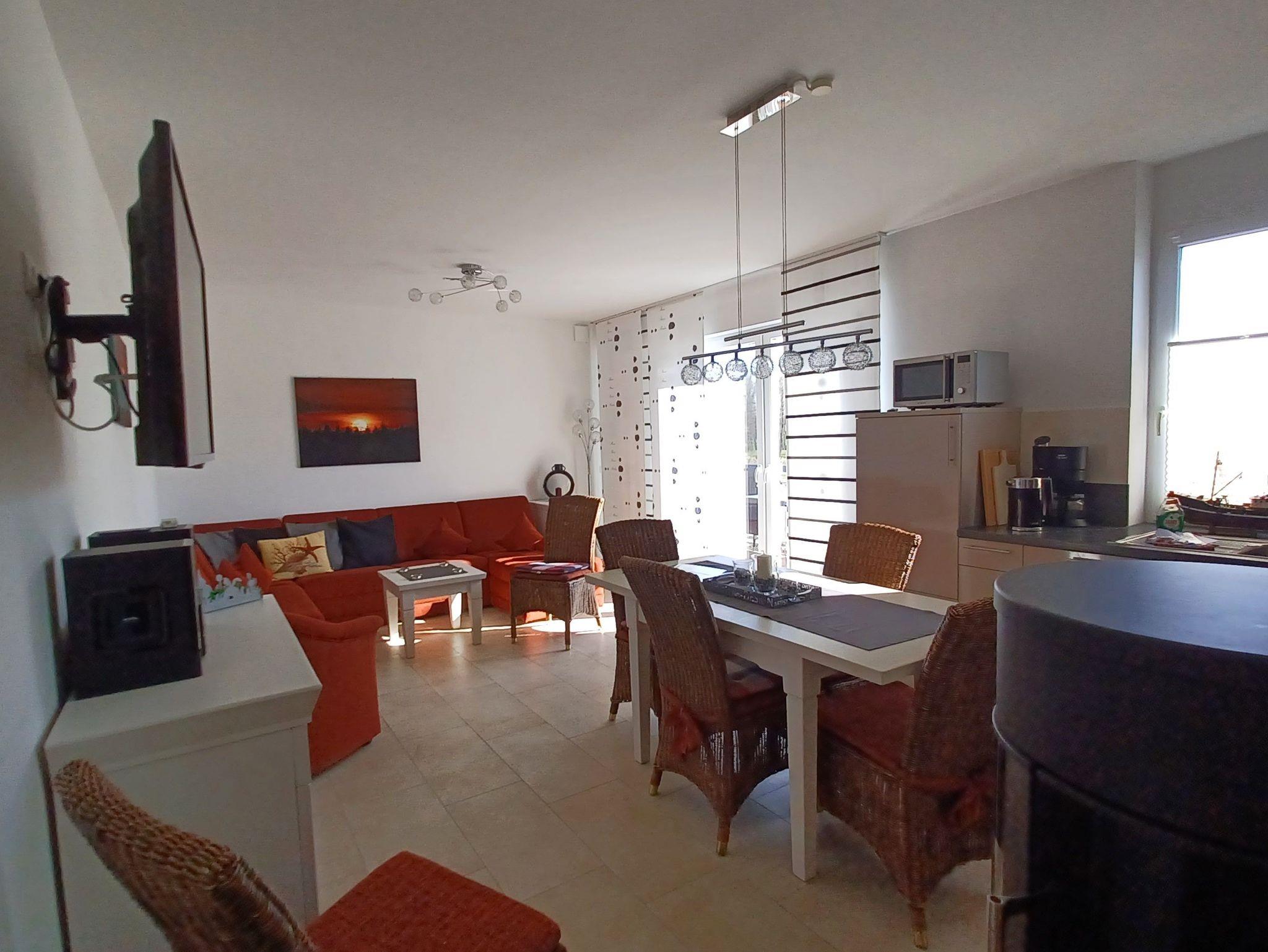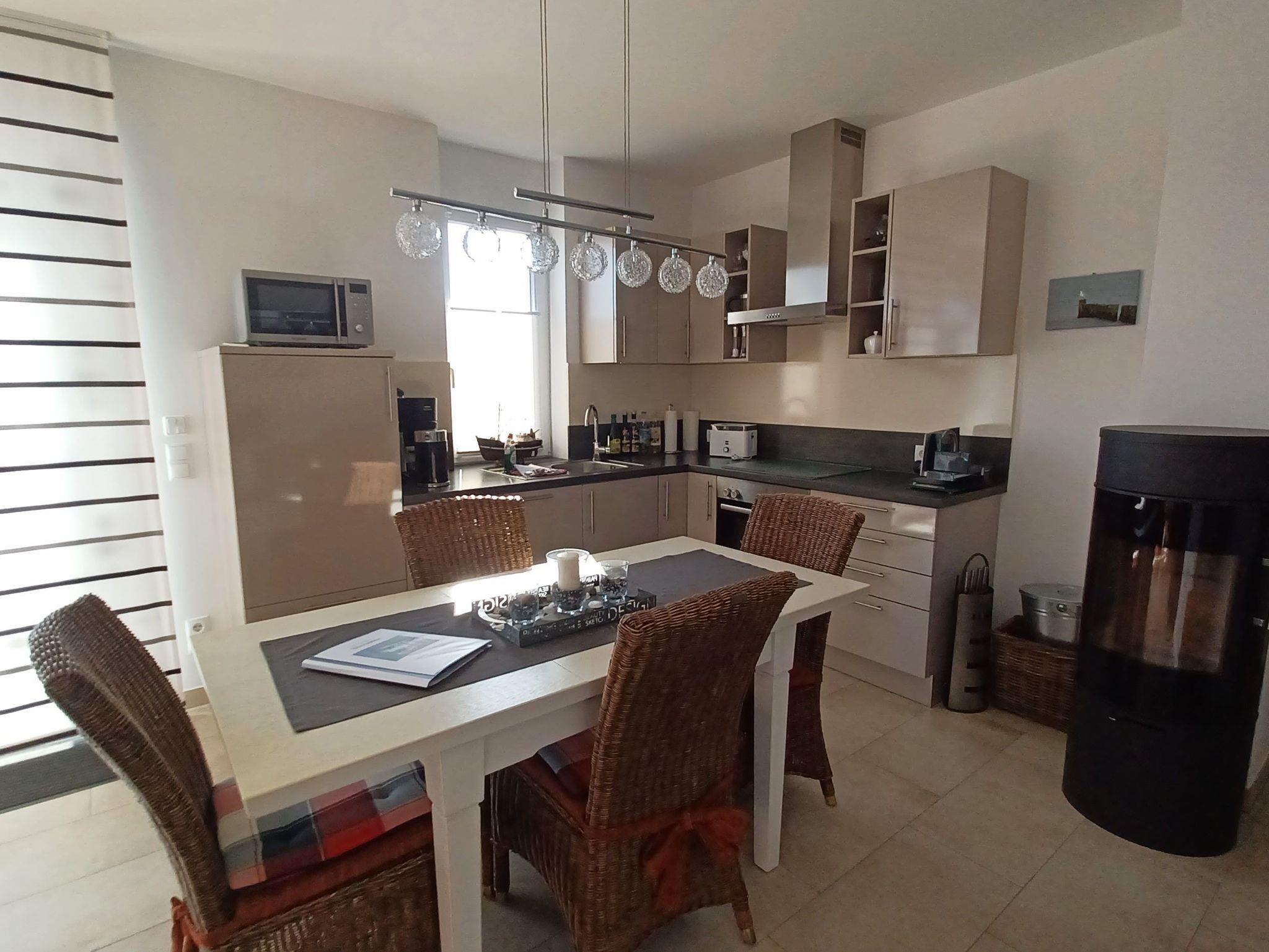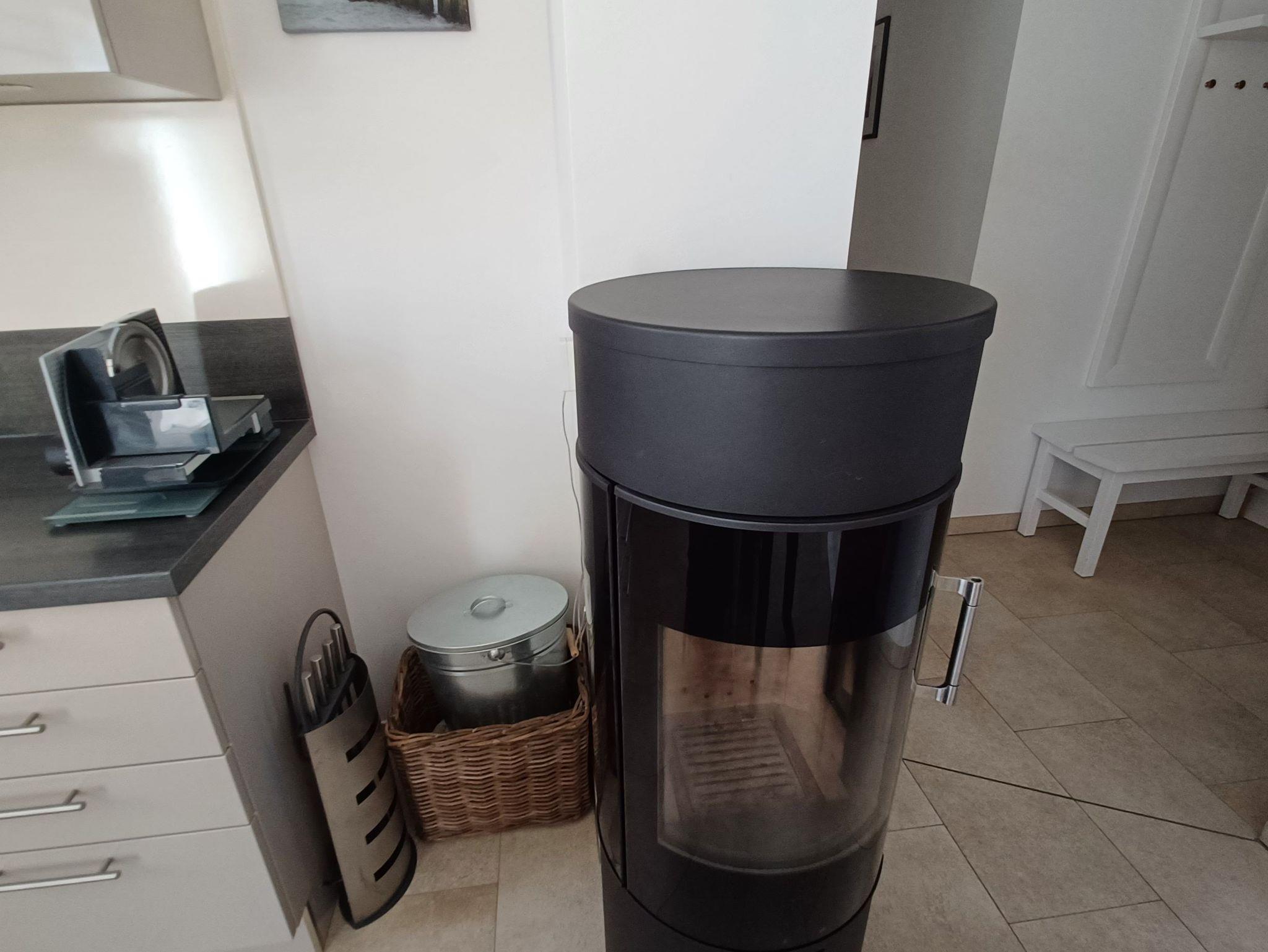 Der im Wohn-/Essbereich platzierte Kaminofen verbreitet an etwas kälteren Tagen eine wohlige Wärme und verströmt ein flauschiges Ambiente (Starterpaket Kaminholz nicht vorhanden).