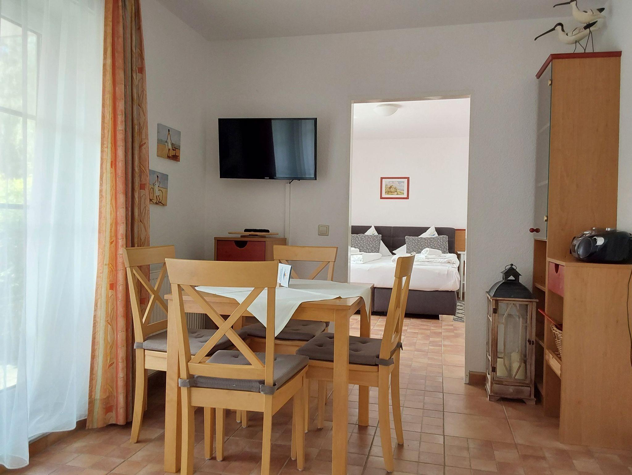 Die modern eingerichteten 2-Raum-Appartements dieser Kategorie sind für 4 Personen geeignet und ca. 46 qm groß. Sie verfügen über einen Wohn-/Schlafraum mit Schlafcouch für 2 Personen und ein separates Schlafzimmer (Doppelbett oder 2 Einzelbetten). Alle unsere Wohnungen sind Nichtraucher-Wohnungen. Bei einigen können Sie Ihr Haustier mitbringen (s. Zimmerdaten). Ausstattung: Sat-TV, Radio und teilweise Telefon, Küchenzeile, Dusche/WC, möblierte Terrasse oder Balkon. Bettwäsche und Handtücher als Erstausstattung.