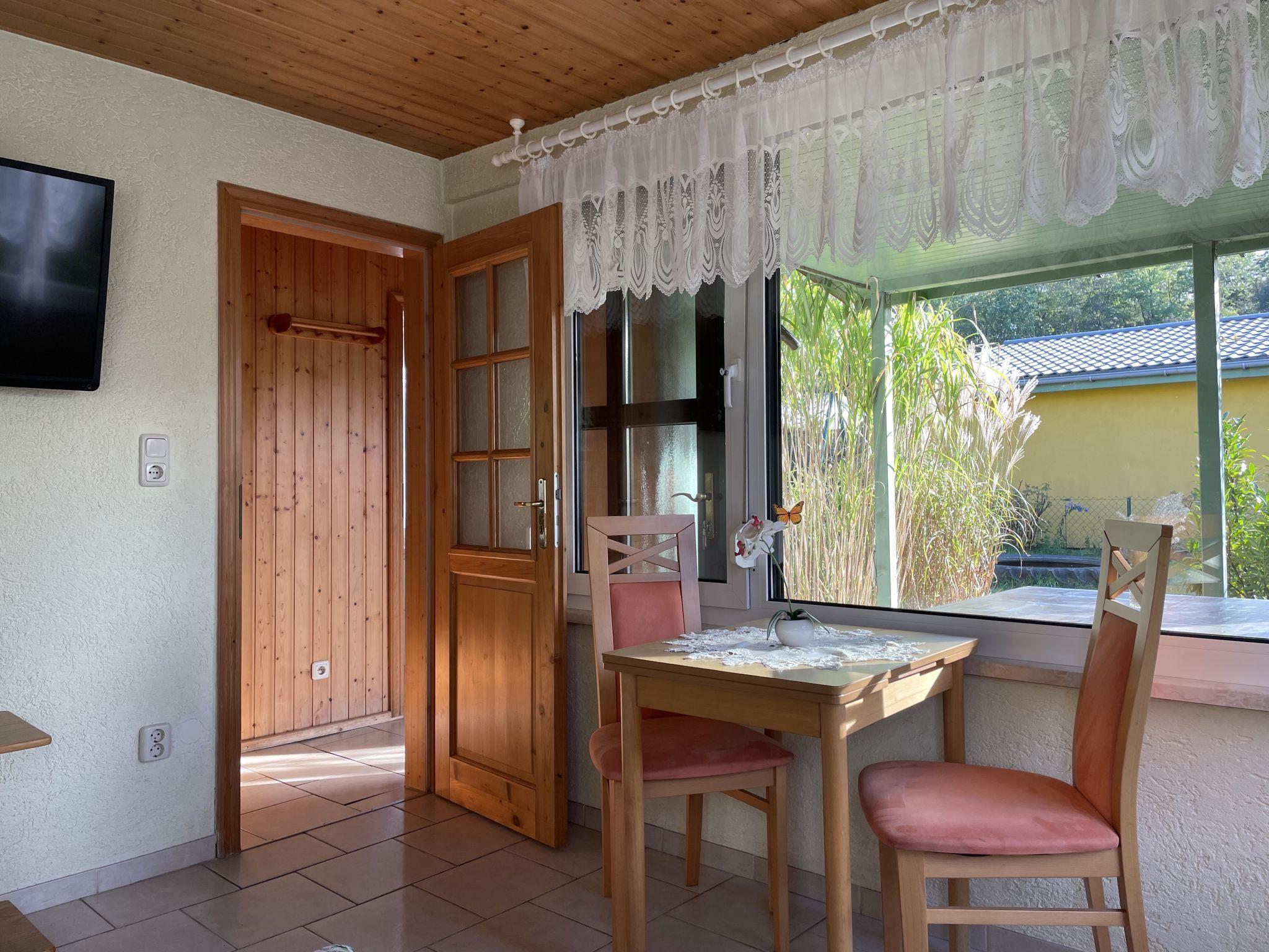 3-Zimmer-Haus 60 m2, im Erdgeschoss. Zweckmässig eingerichtet: Wohnzimmer mit Schwedenofen, Sat-TV, Flachbildschirm und Stereoanlage. Durchgangszimmer mit 2 Betten. 1 Zimmer mit 2 Betten. Küche (Backofen, Geschirrspüler, 4 Glaskeramikplatten, Toaster, Wasserkocher, elektrische Kaffeemaschine) mit Esstisch. Dusche/WC. E-Heizung, G-Heizung. Terrasse überdacht. Terrassenmöbel, Gartengrill (mobil). Zur Verfügung: Holz (extra). Bitte beachten: Nichtraucher-Haus. 2 kleine Haustiere/Hunde erlaubt. Rauchmelder.