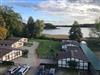 Die FH auf der Insel massiv gebaut (Klimahäuser), Blick auf den Dobbertiner See jeweils eigenem Parkplatz und Terrasse zum See, südseite.