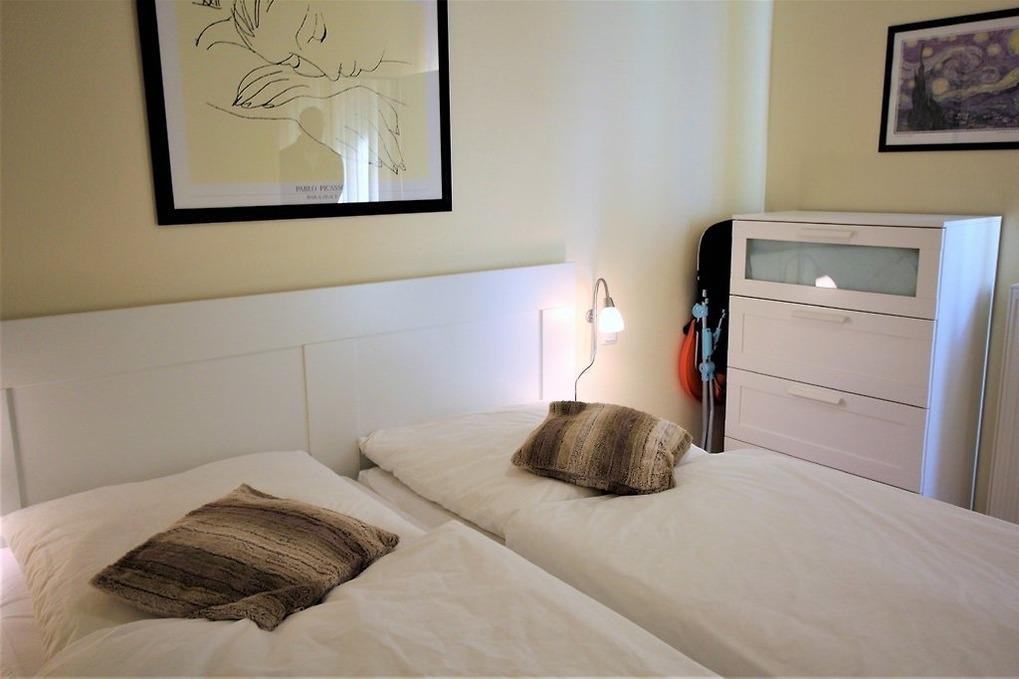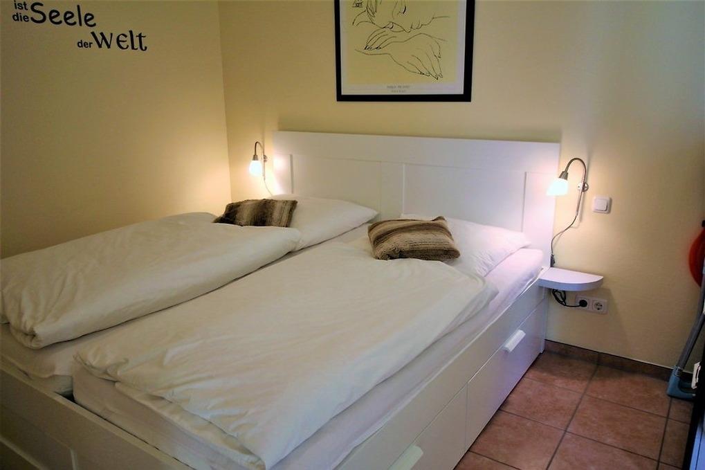 1 Schlafzimmer mit Doppelbett und Kleiderschrank. Kinderreisebett und Hochstuhl stehen zur Verfügung. Modern eingerichtetes Bad. Stufenlos. PKW - Stellplatz. SAT - TV (Flachbildschirm) und Radio. Terrassenbestuhlung. Waschmaschinenbenutzung im Hause gegen Gebühr.