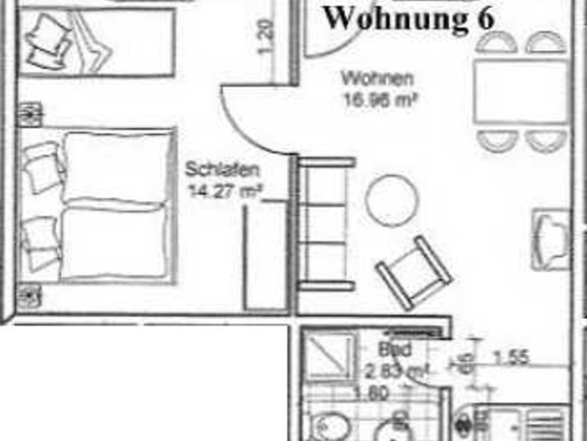 Die Ferienwohnung liegt im Erdgeschoß, hat eine Größe von 38 m² und verfügt über einen Wohnraum mit Pantry, ein Schlafzimmer mit einem Doppel- und einem Etagenbett, ein Badezimmer und eine Terrasse. Im Wohnzimmer befindet sich ein weiteres Einzelbett, zudem ist eine Aufbettung möglich (Schlafsofa). In der Miniküche befinden sich zwei Kochplatten, eine Kaffemaschine, ein Wasserkocher, ein Toaster, ein Kühlschrank mit Gefrierfach sowie eine Mikrowelle. Wäsche kann zugebucht werden (Handtuch- Bettwäschepaket 25,00 pro Person). Im Ferienpark kann ein Grill gemietet werden, ebenso ist die Nutzung einer gemeinschaftlichen Waschmaschine möglich (gegen Gebühr).