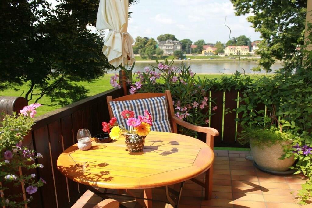 Unsere sehr geschmackvoll eingerichtete Ferienwohnung befindet sich im ersten Stock des Landhauses mit Blick auf die nur 50 m entfernte Elbe im Dresdner Stadtteil Loschwitz. Das Mobiliar gibt den Charme des 19. Jahrhunderts wieder, ohne auf den Luxus des 21. Jahrhunderts zu verzichten. Spannen Sie nach einem aufregenden Tag in der schnell erreichbaren Dresdner Innenstadt oder der Sächsischen Schweiz auf den bequemen Longchairs aus oder beobachten Sie die Raddampfer auf der Elbe. Auf dem 8 qm großen Balkon können Sie Natur pur genießen.