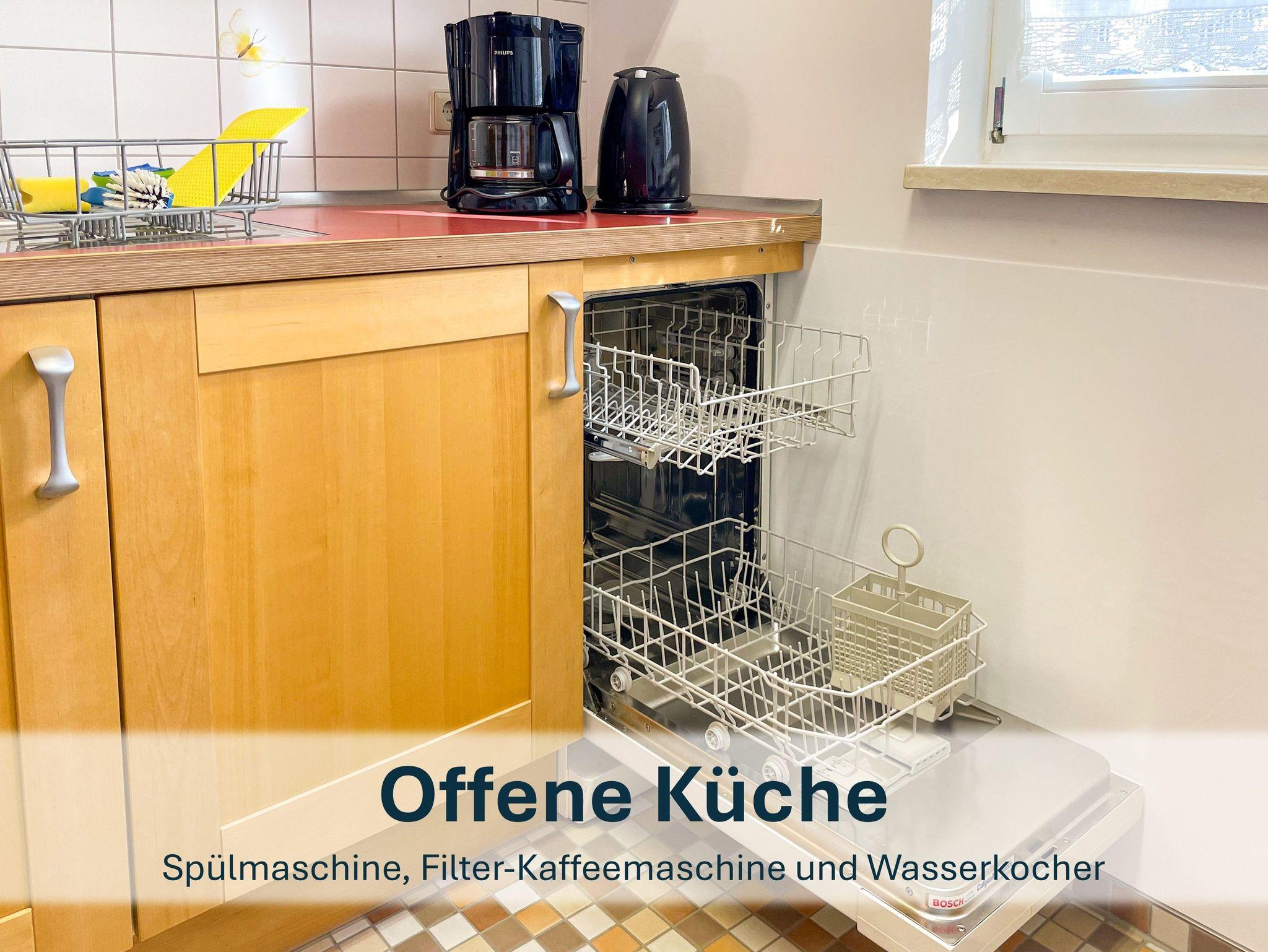 Das liebevoll eingerichtete Ferienhaus teilt sich auf 60m² in Badezimmer, Wohn-/ Schlafbereich und offene Küche ein.