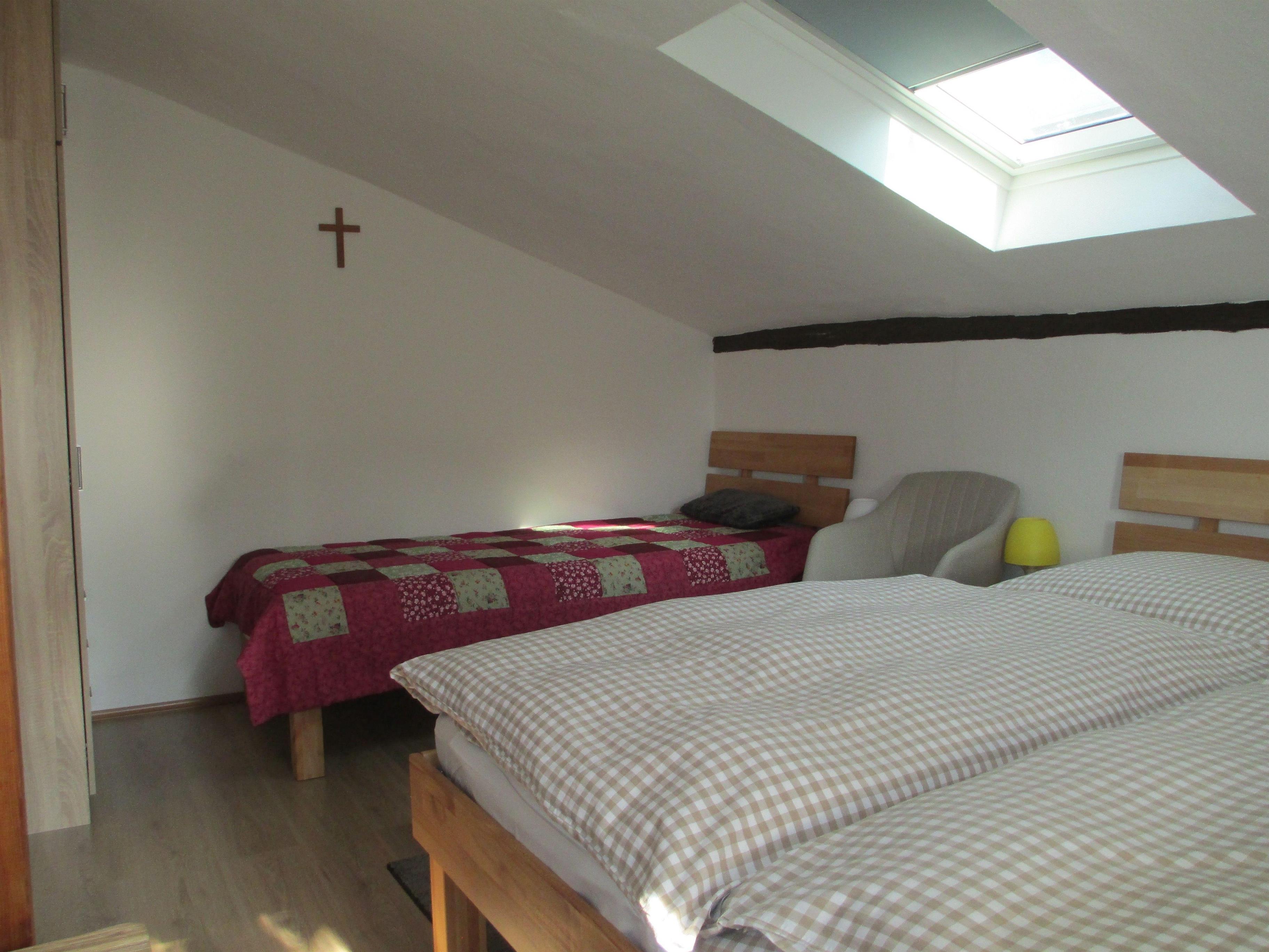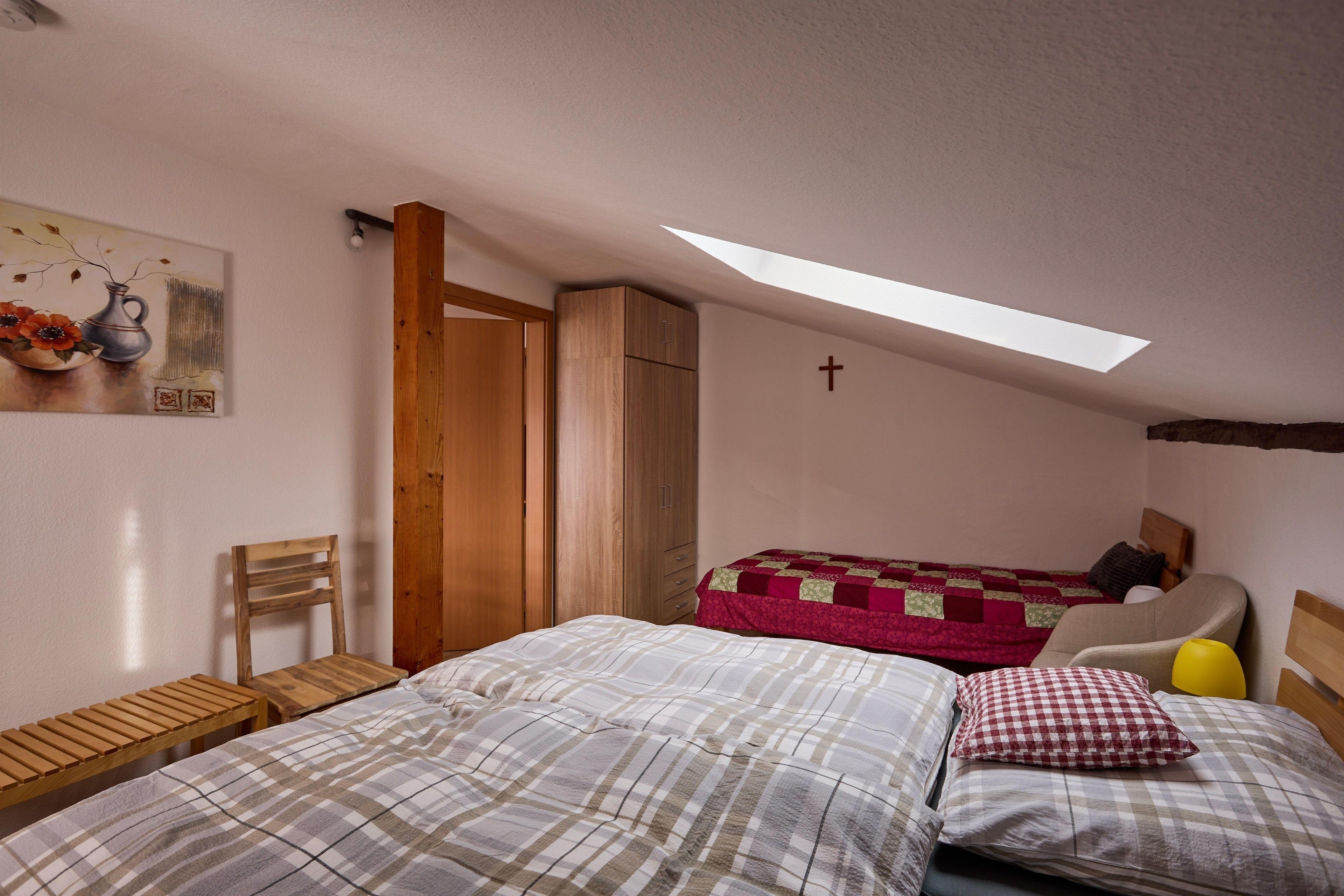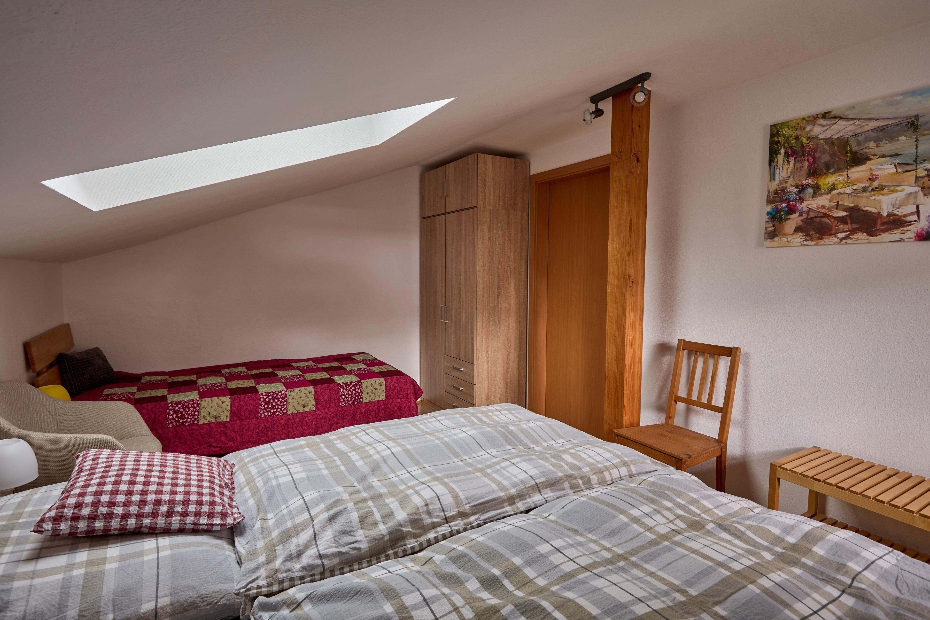 2. OG, KEIN Aufzug , Schlafzimmer und Küche mit Dachschrägen.