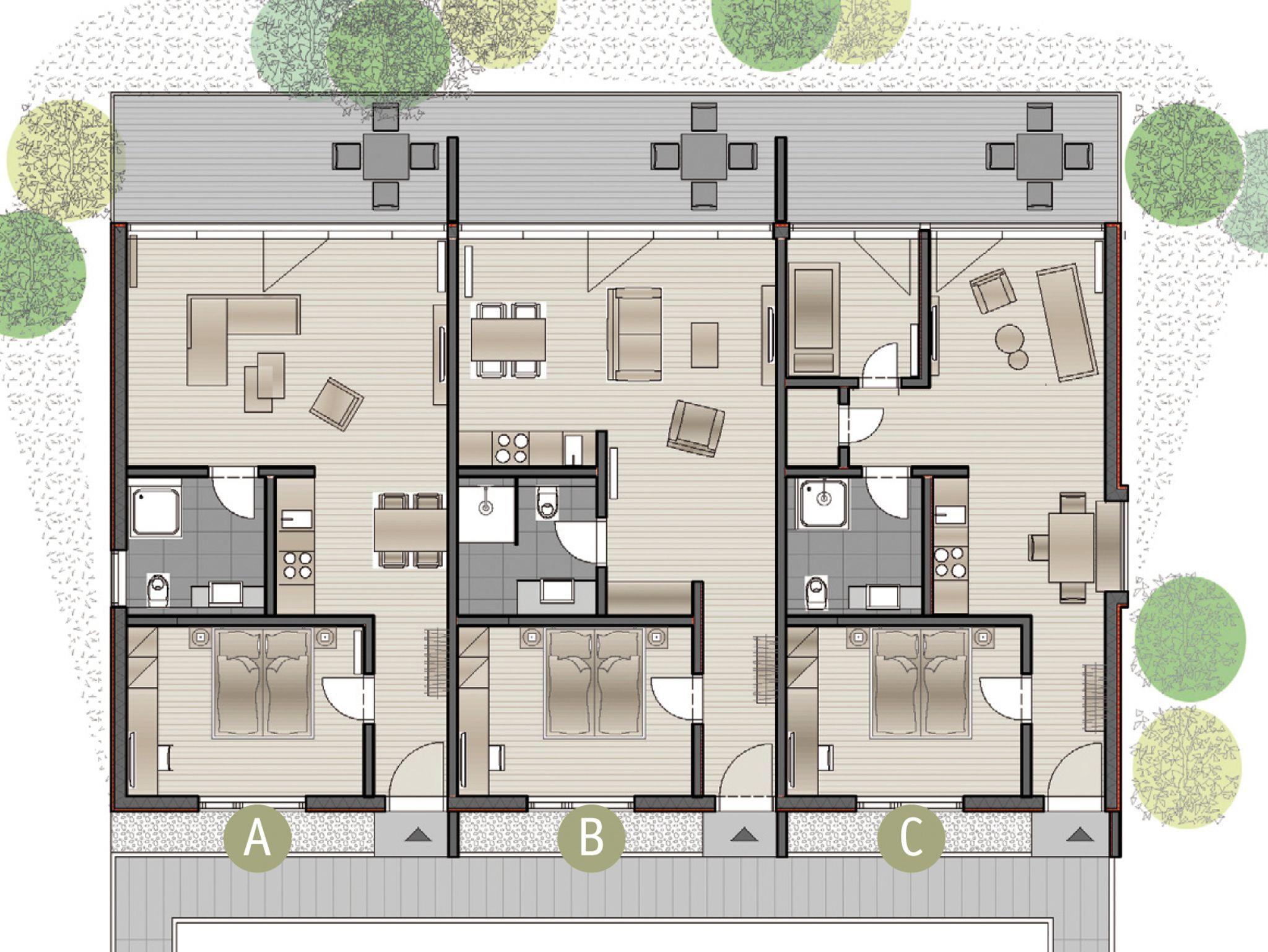 Das im April 2020 fertiggestellte Apartmenhaus verfügt über 3 moderne Ferienwohnungen. Die stilvoll eingereichteten Wohnungen haben eine Größe von ca. 57 qm mit separatem Eingang und Balkon in Südlage.