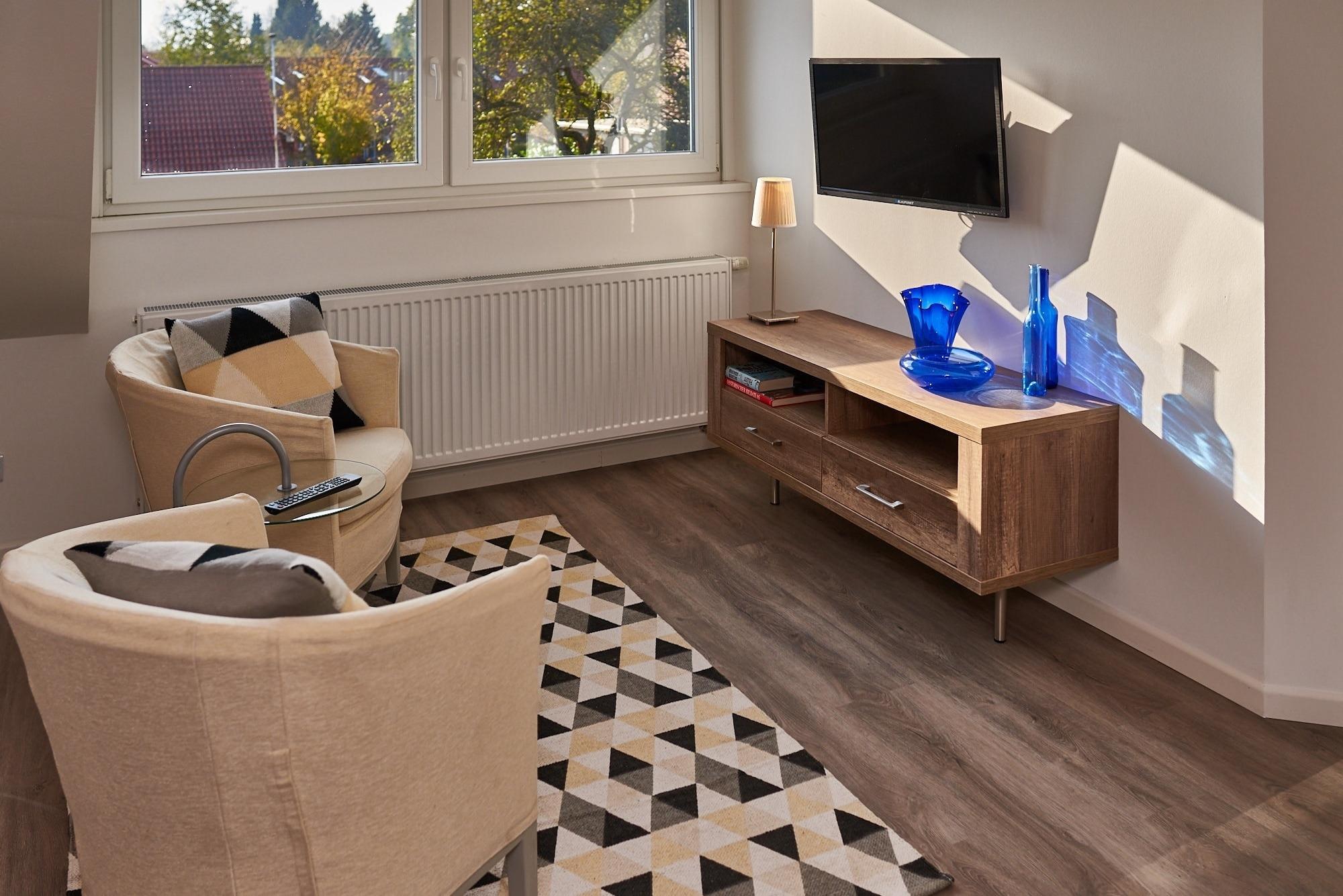 Gemütliche Ferienwohnung mit Balkon und Gartenblick in Eckernförde, nur 600 m zum Strand und Stadtzentrum.