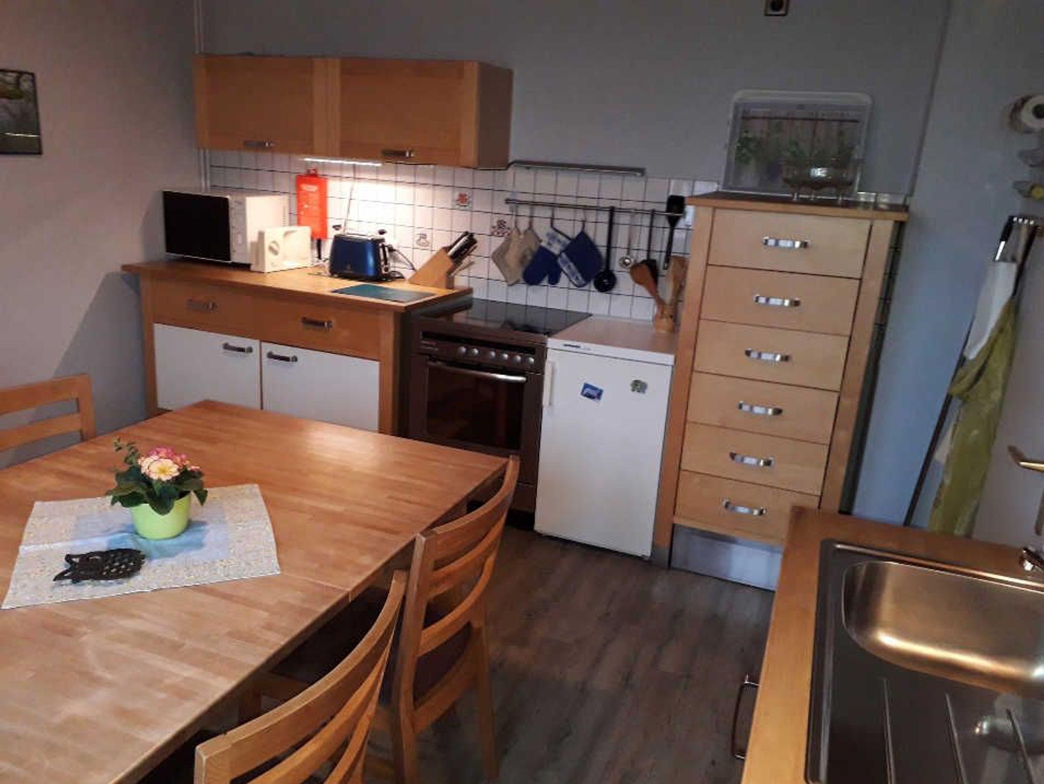 Gemütliche, gut ausgestattete Ferienwohnung für 1 bis maximal 5 Personen. Großer Wohnraum mit Kaminofen, Kuschelsofa-Ecke, Schreibtisch oder Spiele-Tisch. Küche sehr gut ausgestattet, ein Dusch-Bad mit WC und ein Doppel-Schlafzimmer.