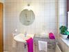 Bad mit Dusche, Haartrockner und WC.
