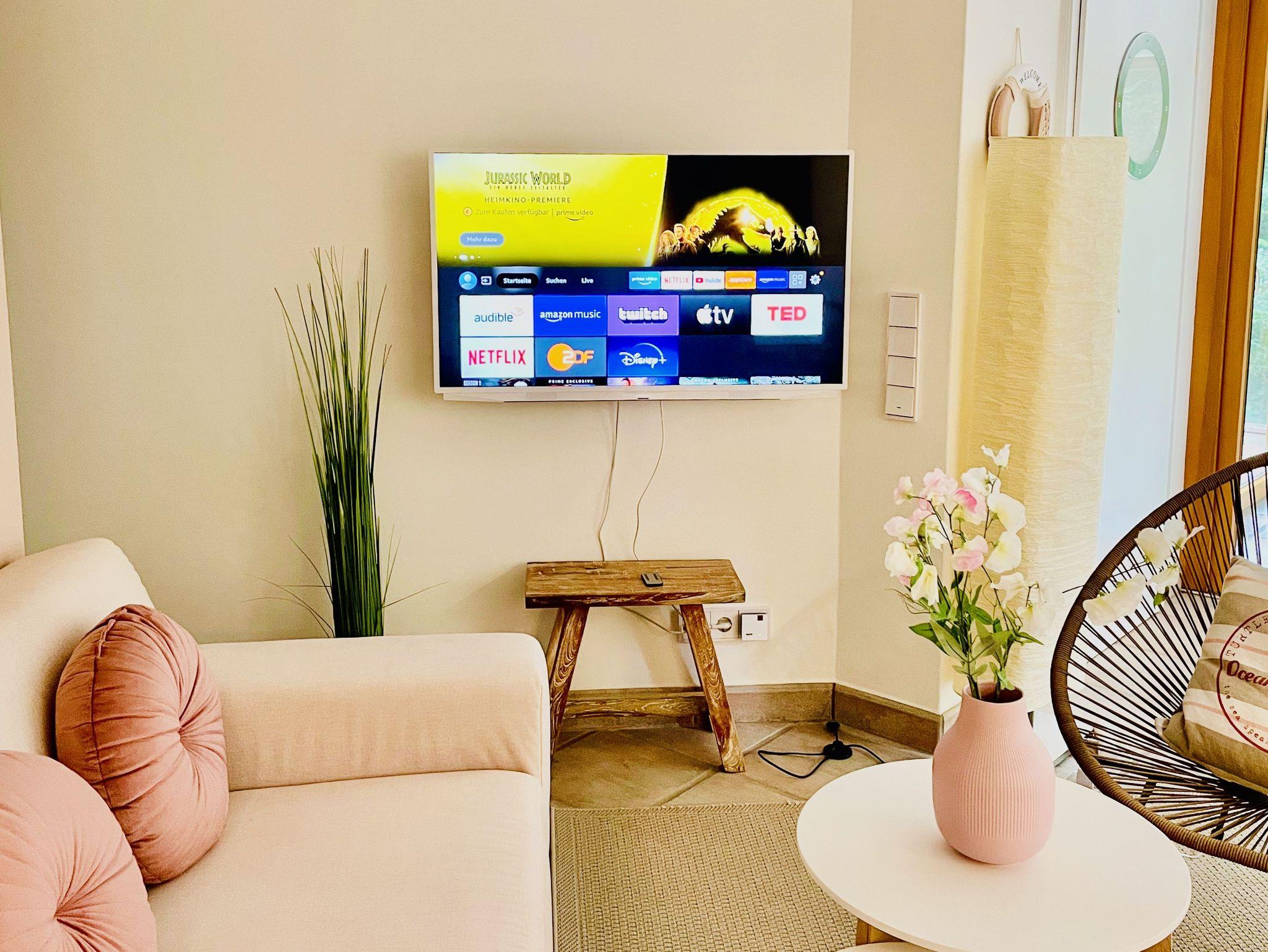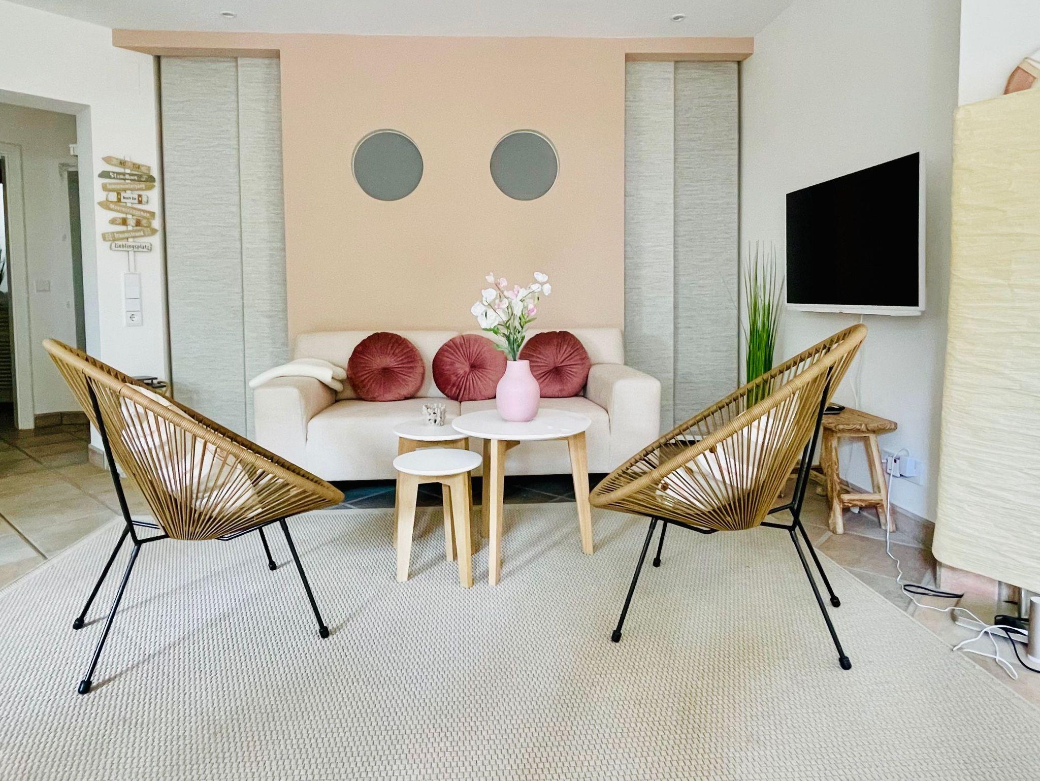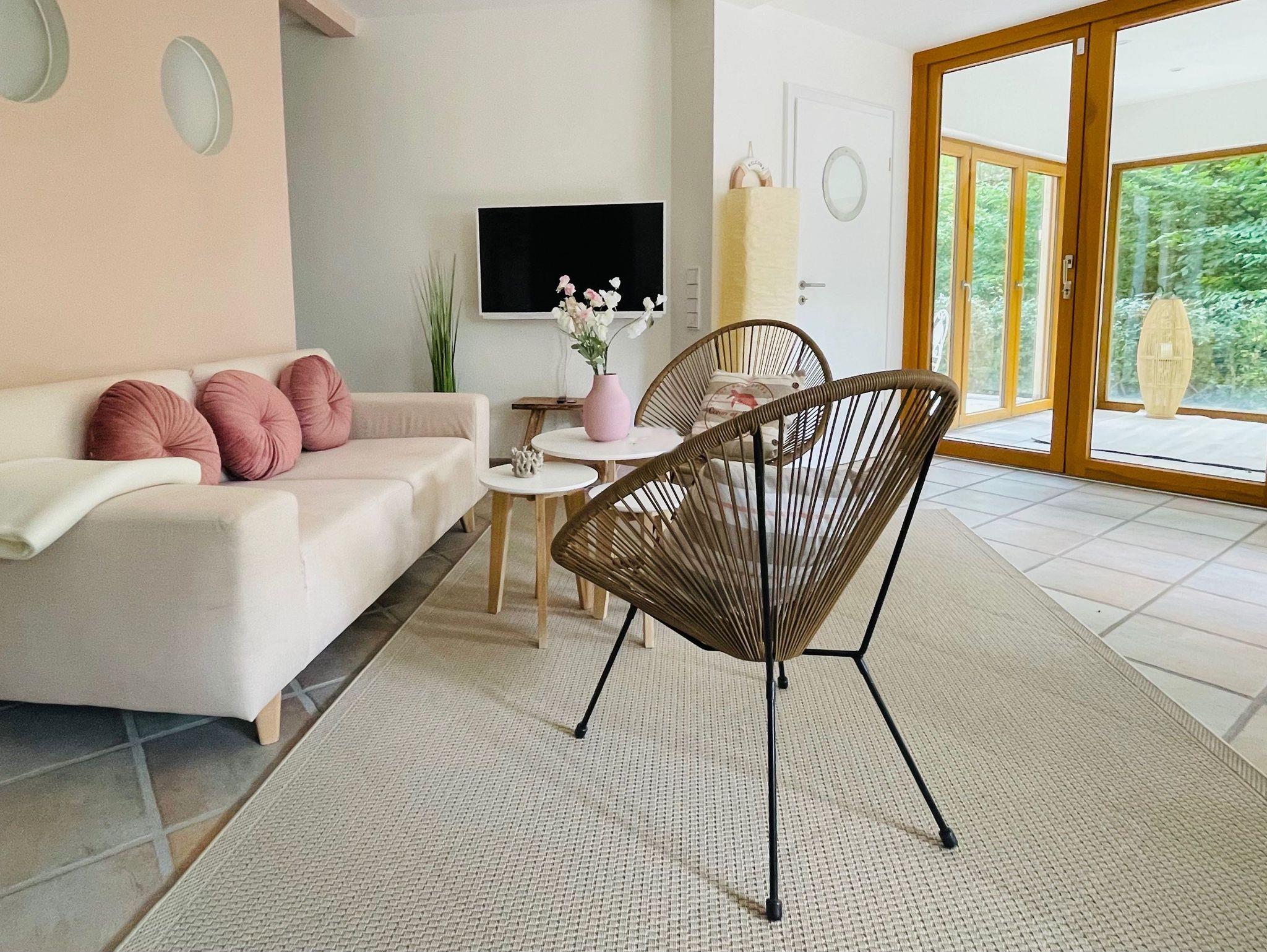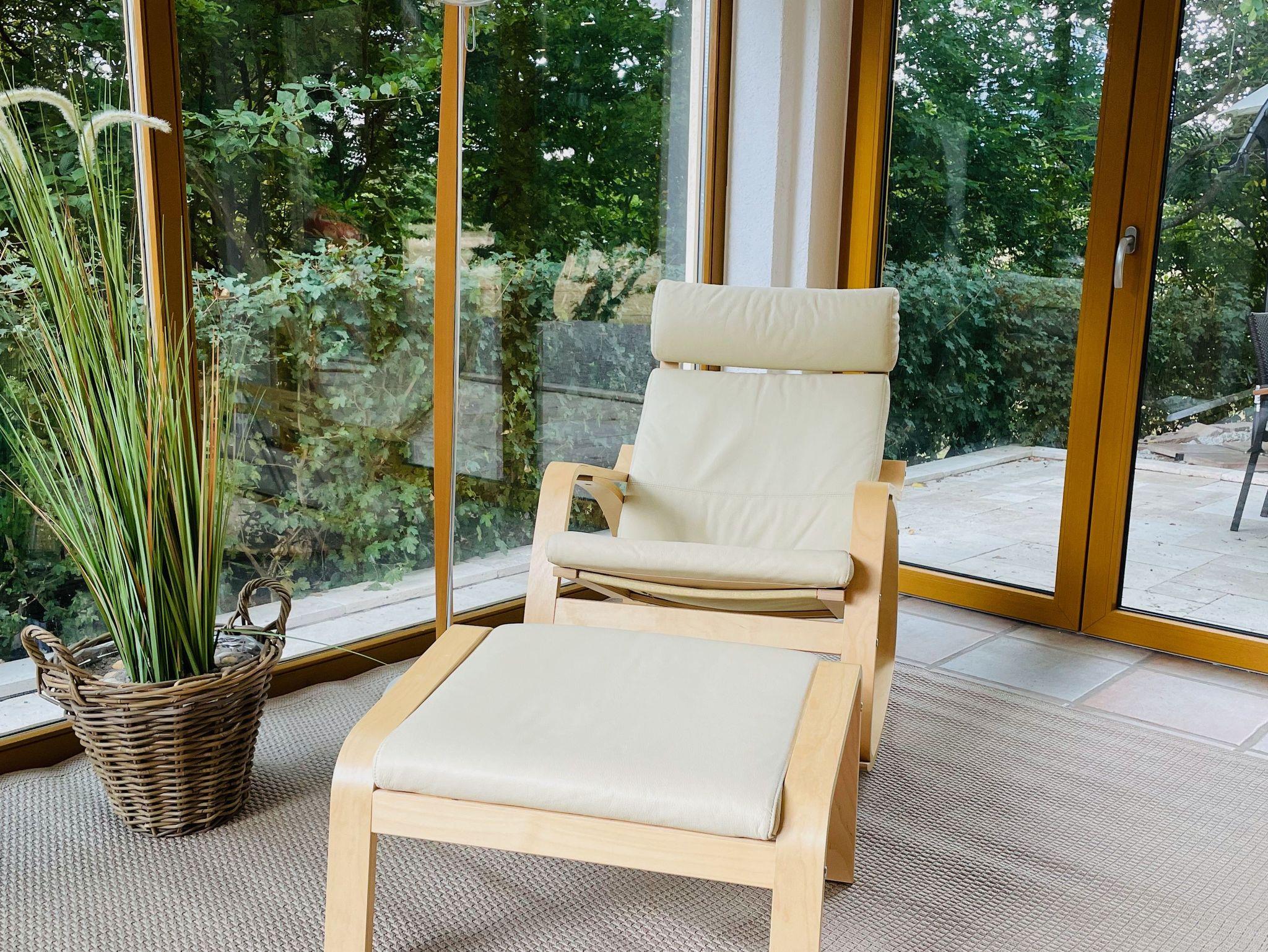 Ein breites Sofa und zwei Acapulco-Chairs laden zum gemütlichen Sitzen und Erzählen oder einem Video- und Fernsehabend vor dem Smart-TV ein. Im Wintergarten finden Sie einen lederbezogenen Schaukelstuhl mit Fusshocker und Leselampe, in dem sie in der Abendsonne die Erlebnisse des Tages Revue passieren lassen können.