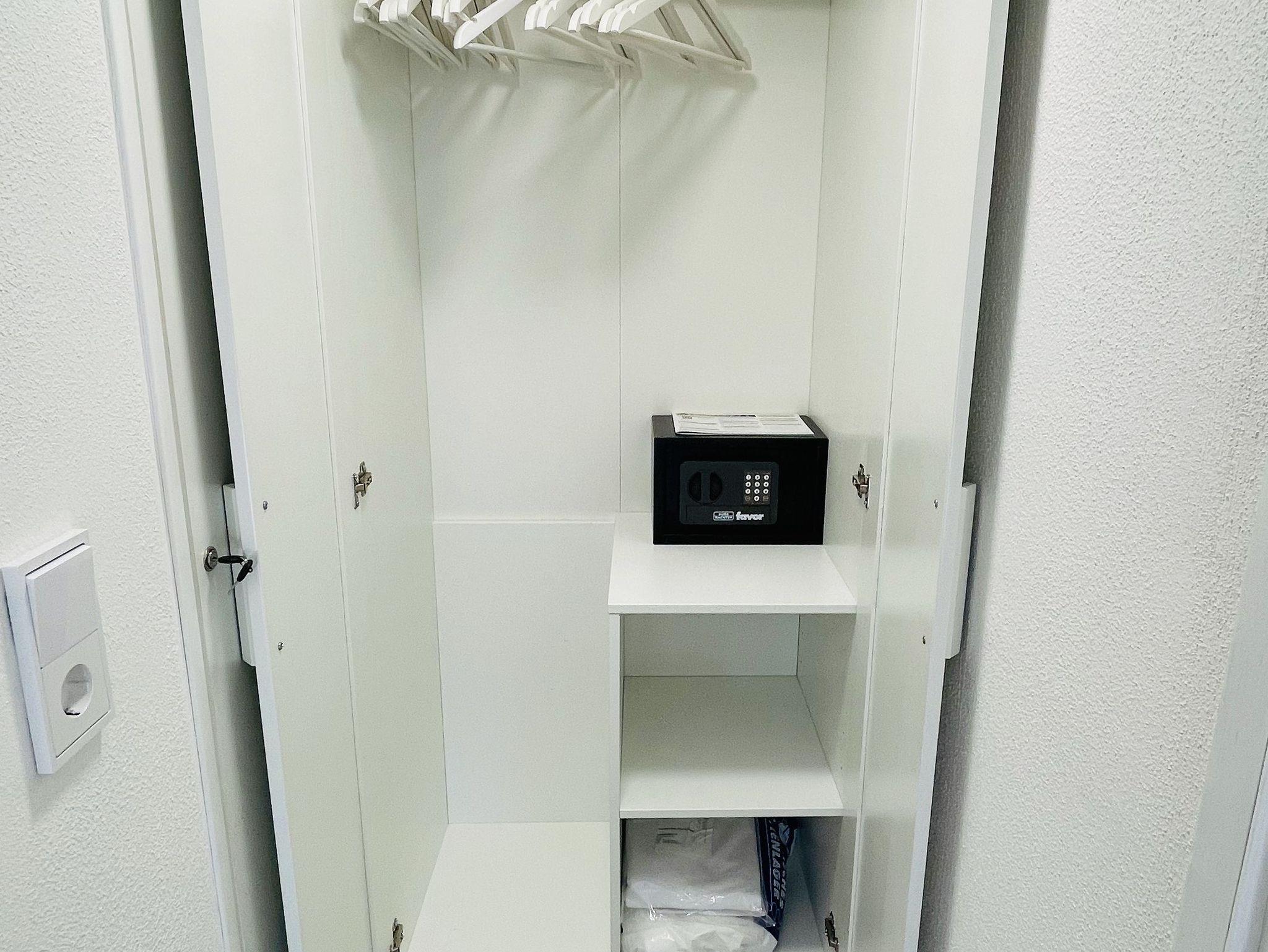 Komplettiert wird die Wohnung durch einen separaten Abstellraum mit Wandschrank und Safe, einen schnellen WLAN-Zugang (50 Mbit), Smart-TV und eine Audioanlage mit SONOS-Technologie. Kaffeemaschine, Toaster und Fön sind selbstverständlich ebenfalls vorhanden, der Schlafraum und das Bad sind mit Mückengittern an den Fenstern versehen.